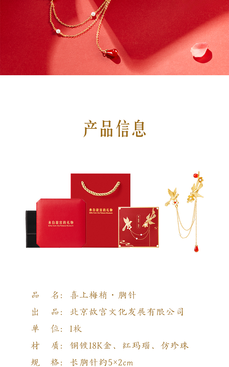 【故宫饰品】喜上梅梢胸针博物馆文创高级感胸花新中式新婚生日礼物