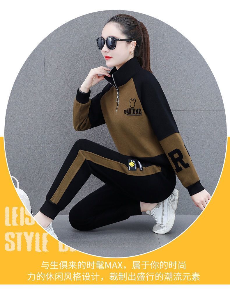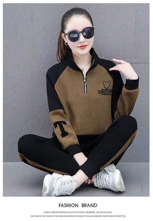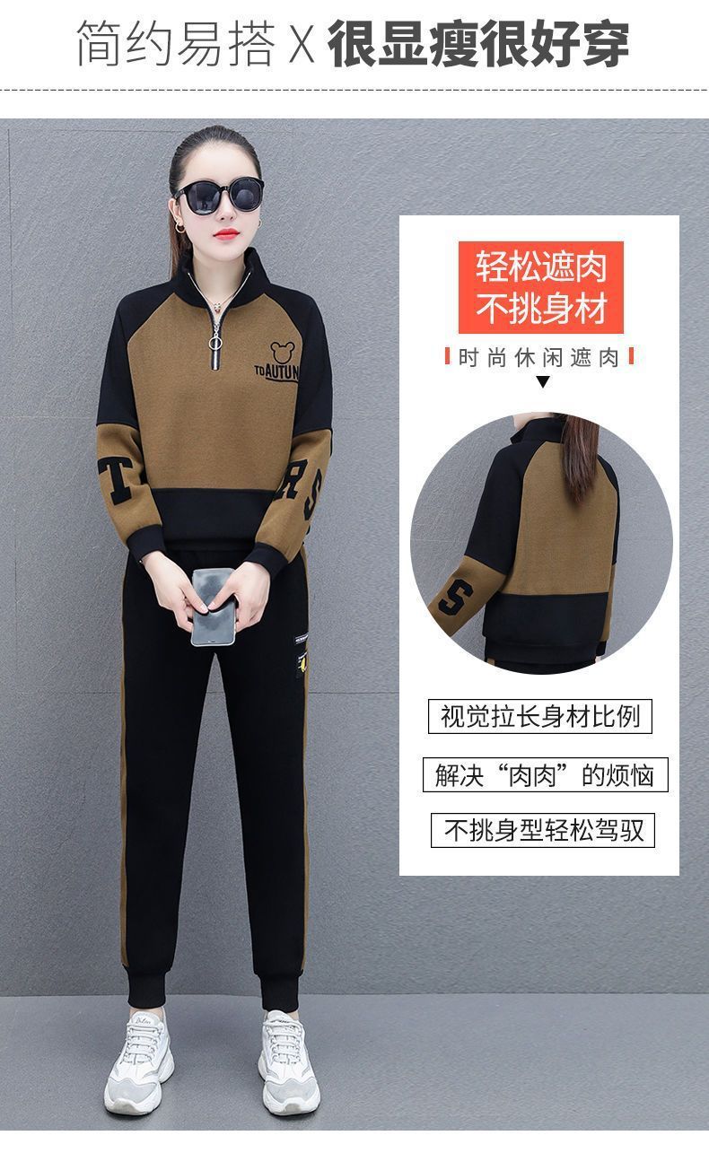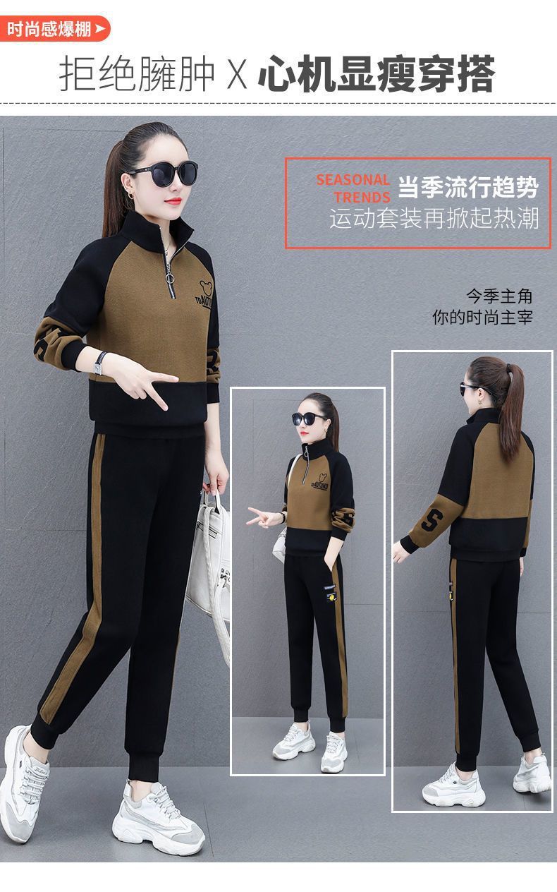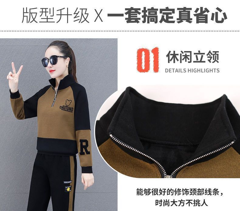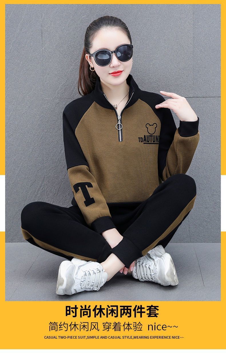 刺绣运动服套装女2026春秋季大码宽松立领时尚休闲卫衣两件套妈妈装