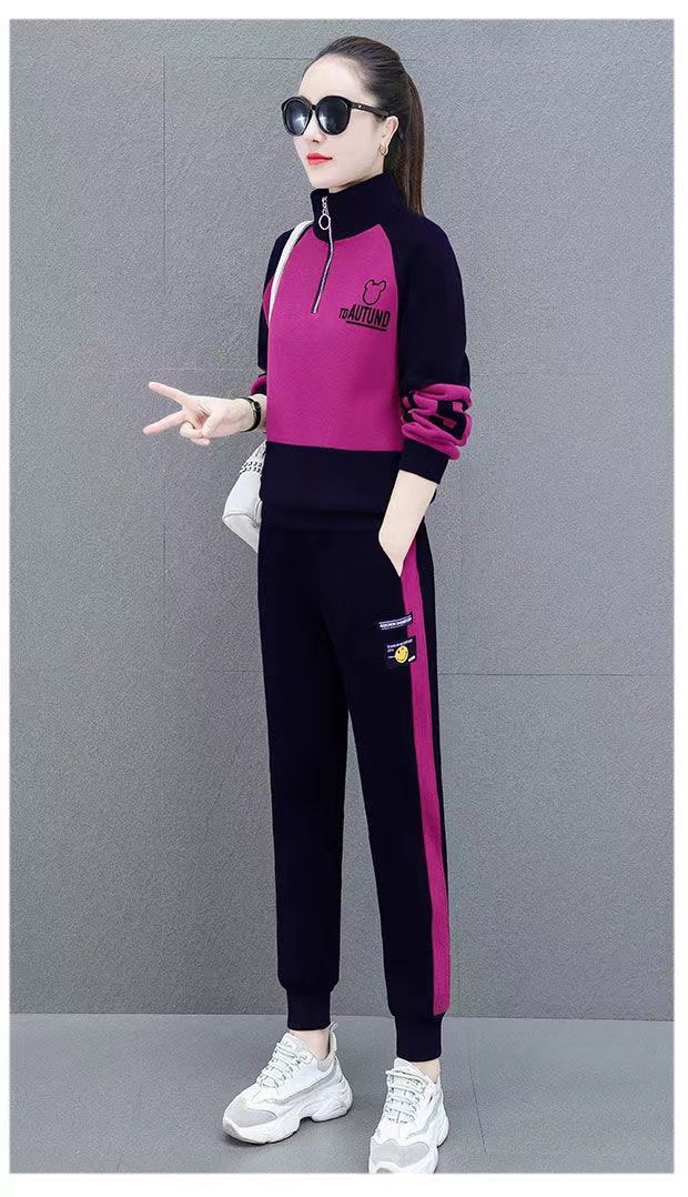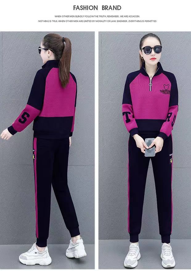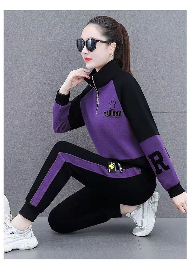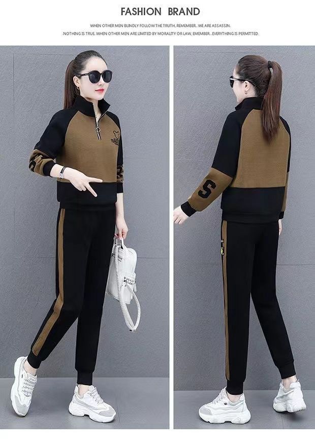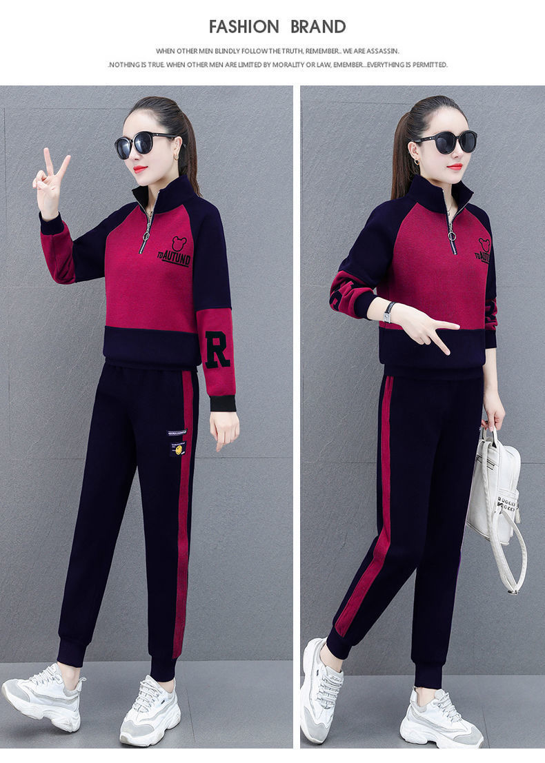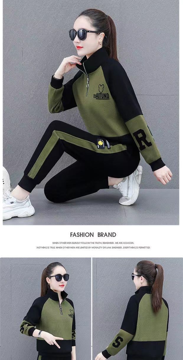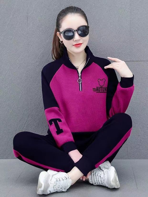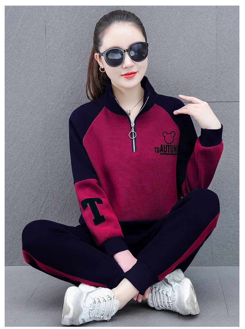 刺绣运动服套装女2026春秋季大码宽松立领时尚休闲卫衣两件套妈妈装