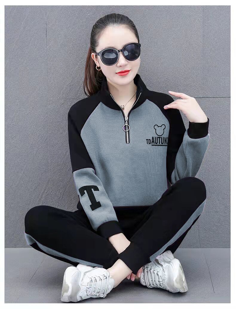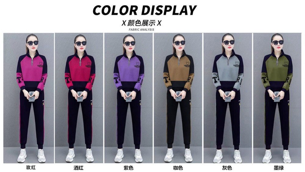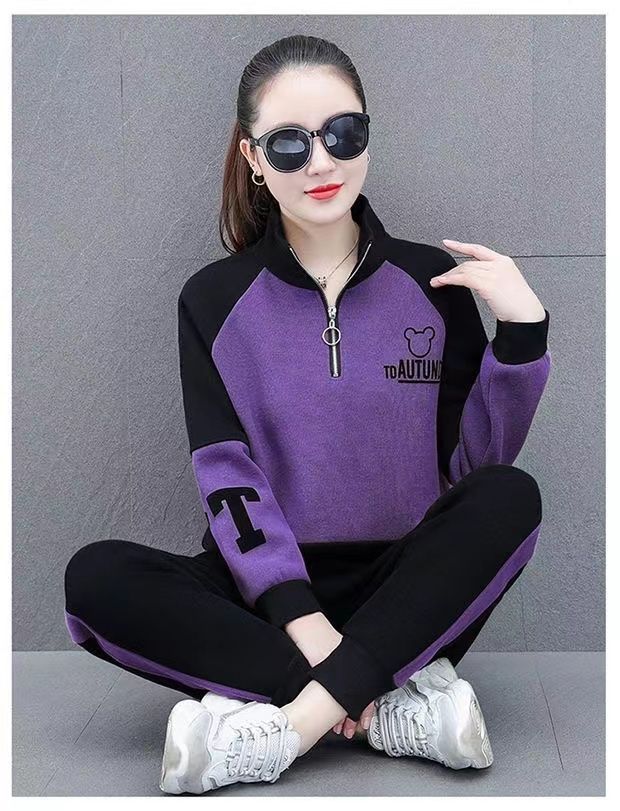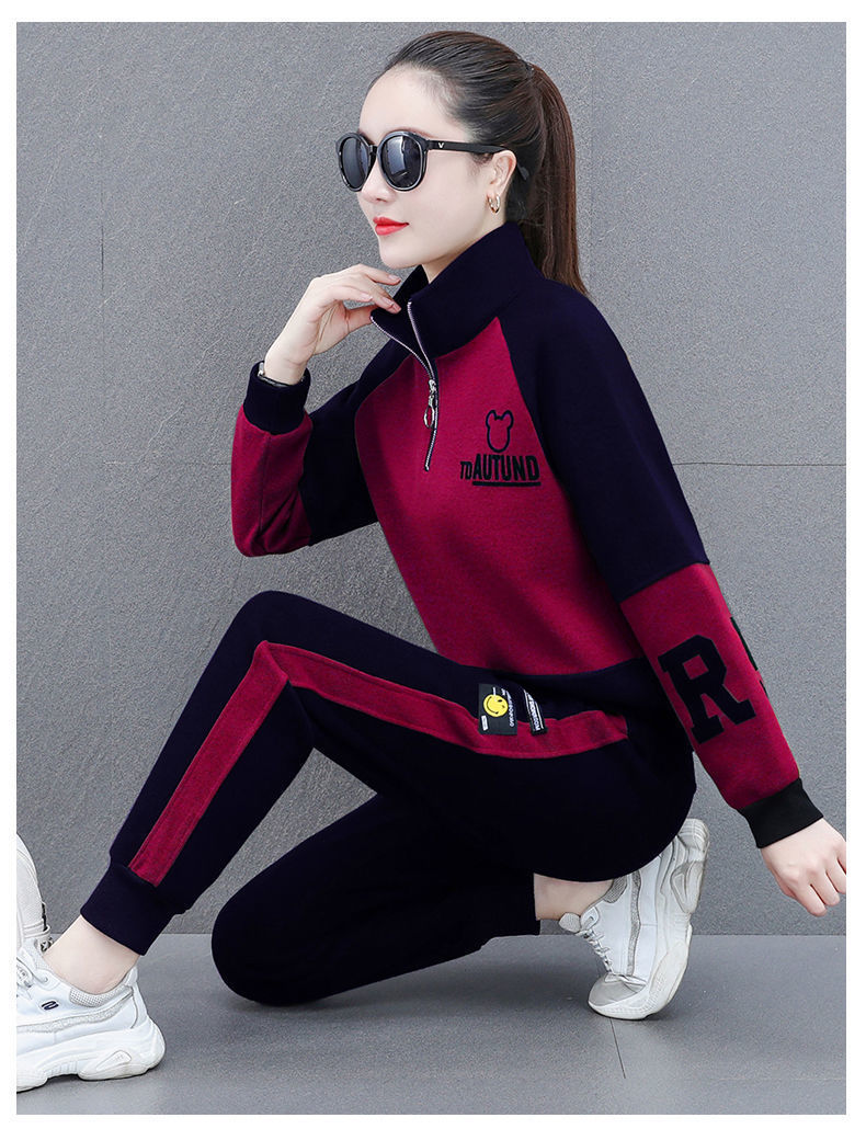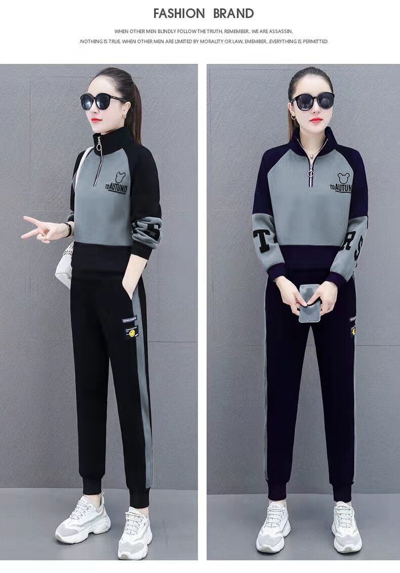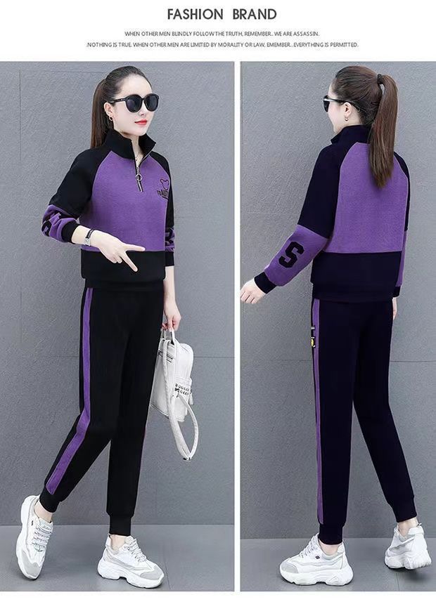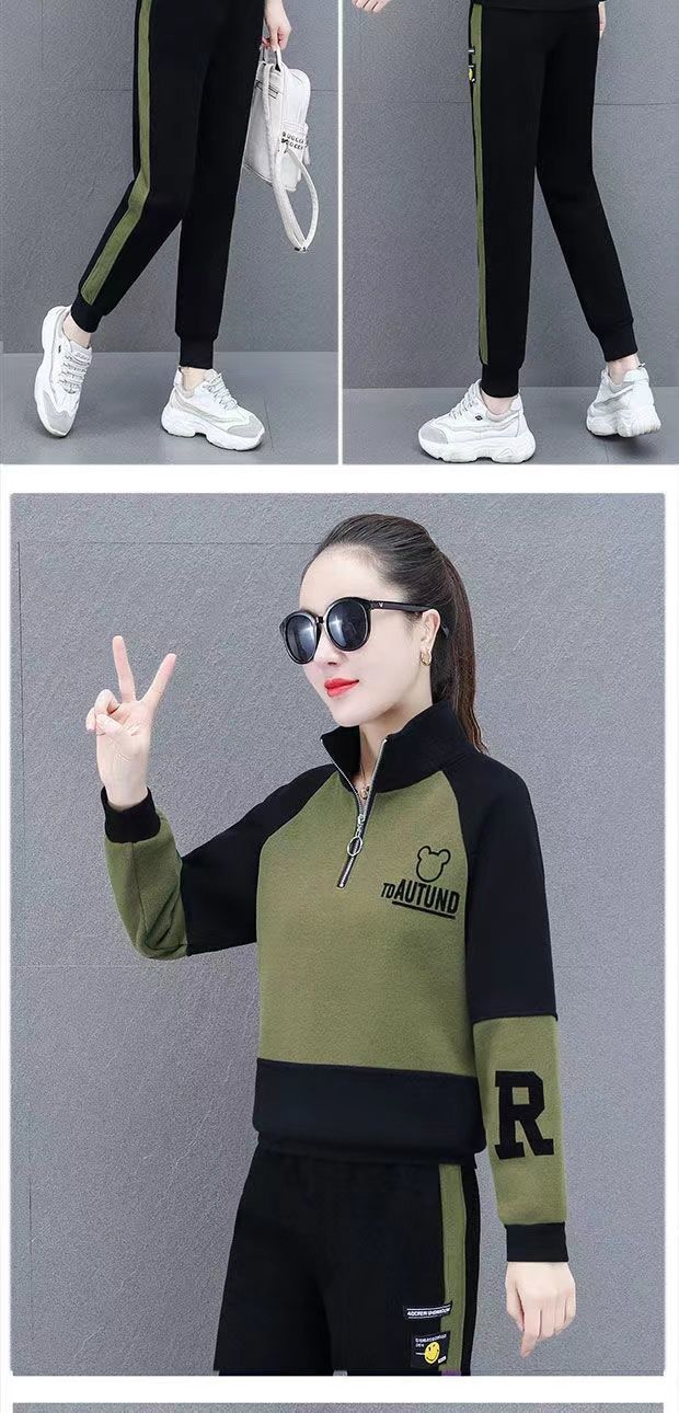刺绣运动服套装女2026春秋季大码宽松立领时尚休闲卫衣两件套妈妈装