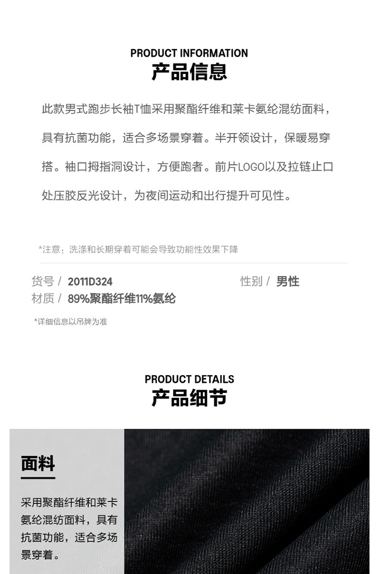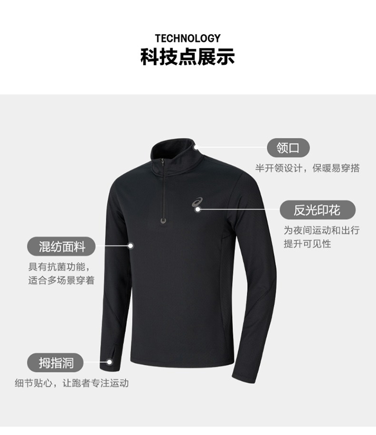 ASICS亚瑟士 男款舒适跑步运动长袖T桖