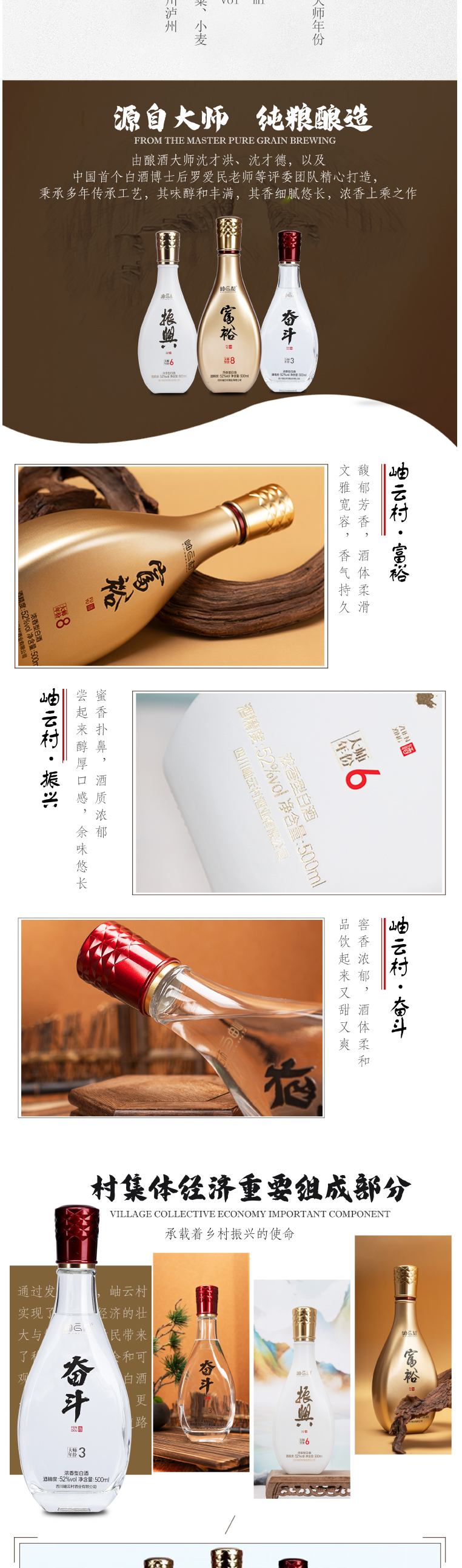 岫云村白酒奋斗大师3年份52度500ml浓香型纯粮发酵白酒