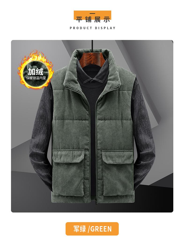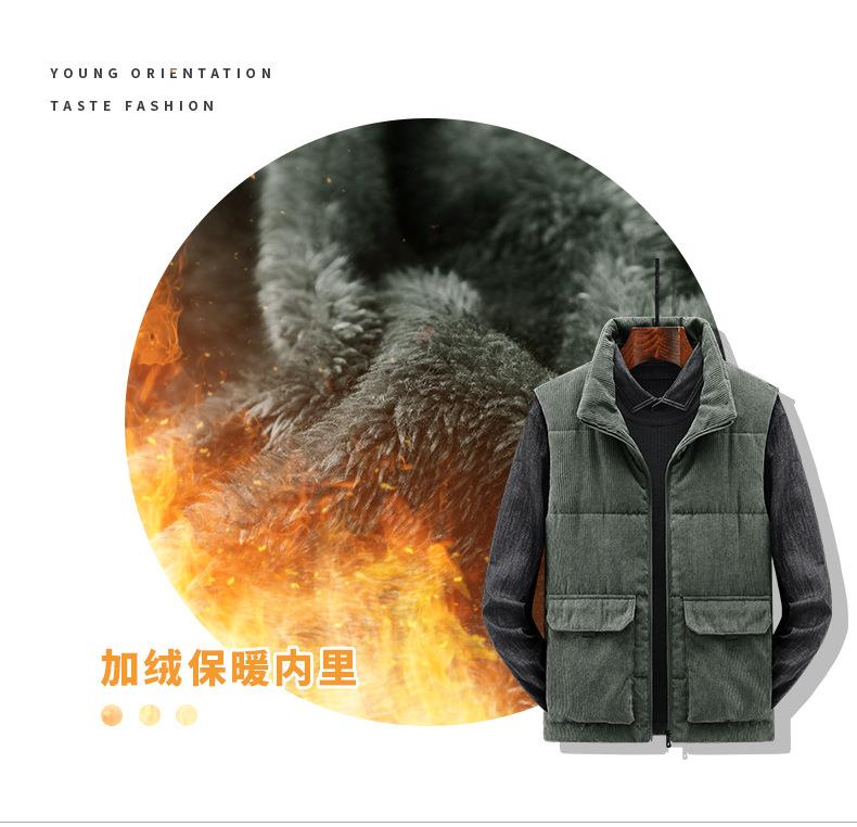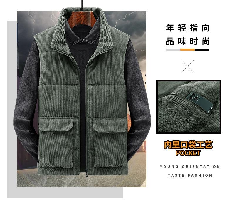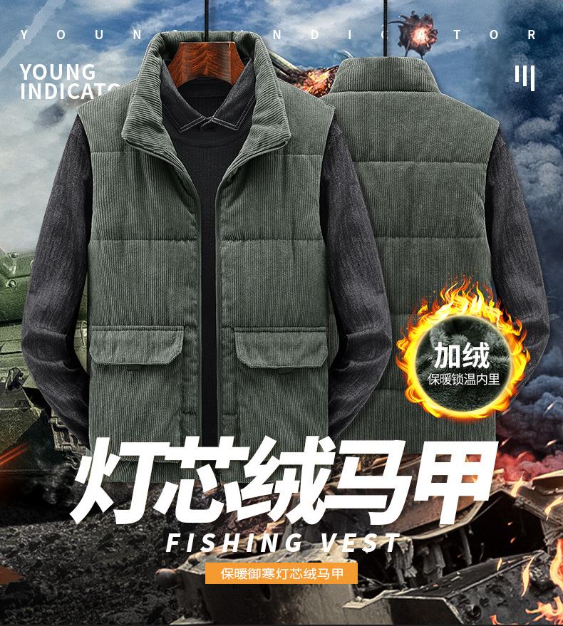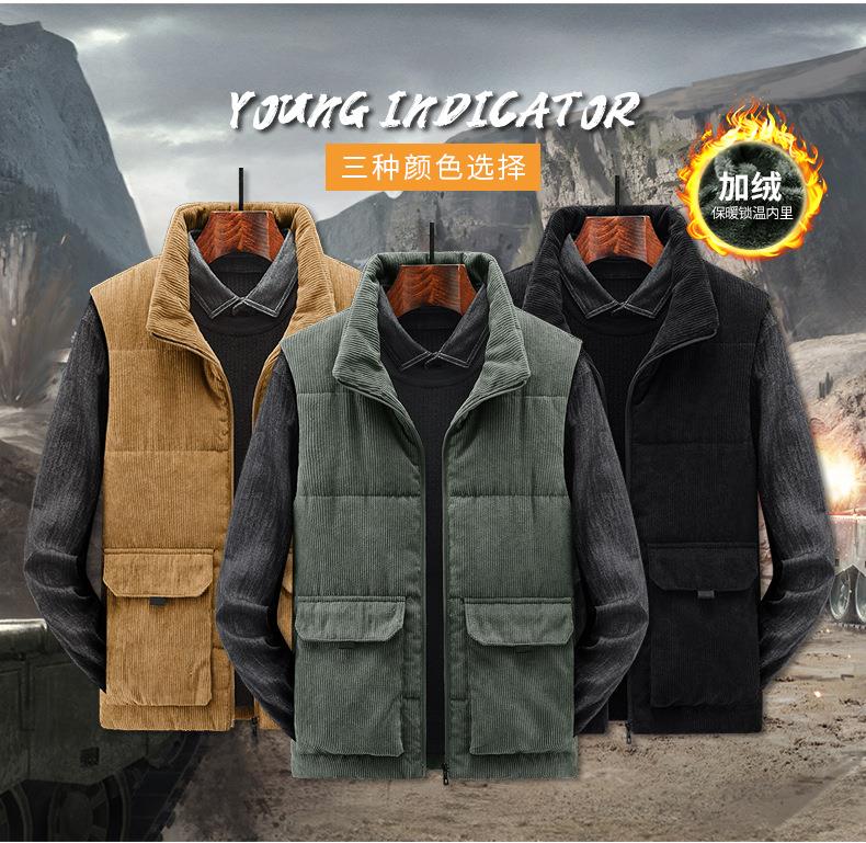 冬季男士灯芯绒马甲加绒加厚马夹男大码立领坎肩多口袋工装潮