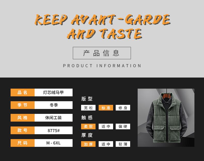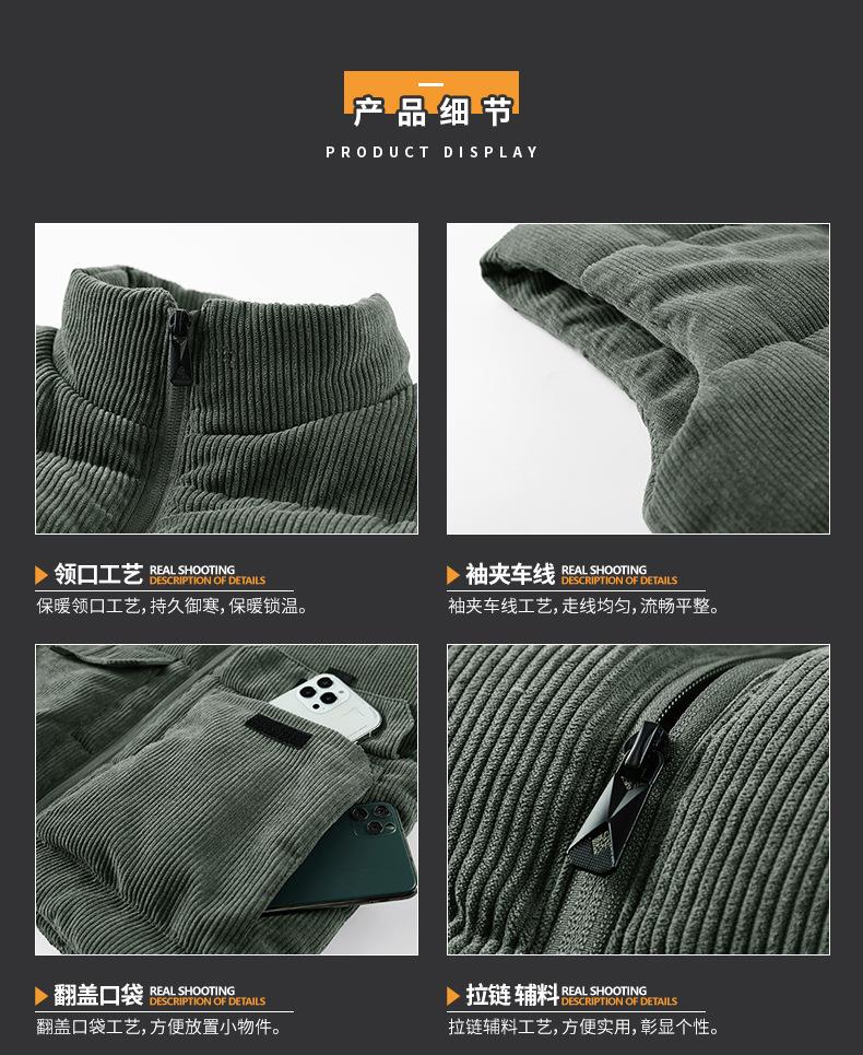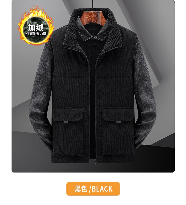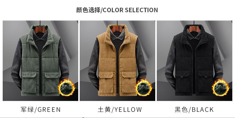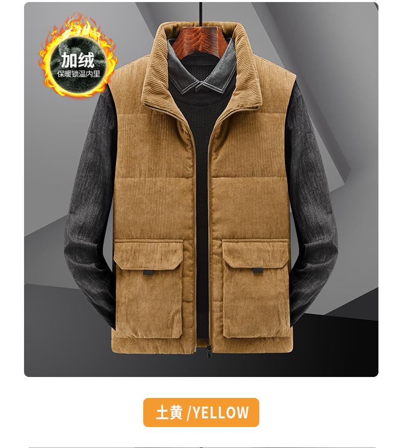 冬季男士灯芯绒马甲加绒加厚马夹男大码立领坎肩多口袋工装潮