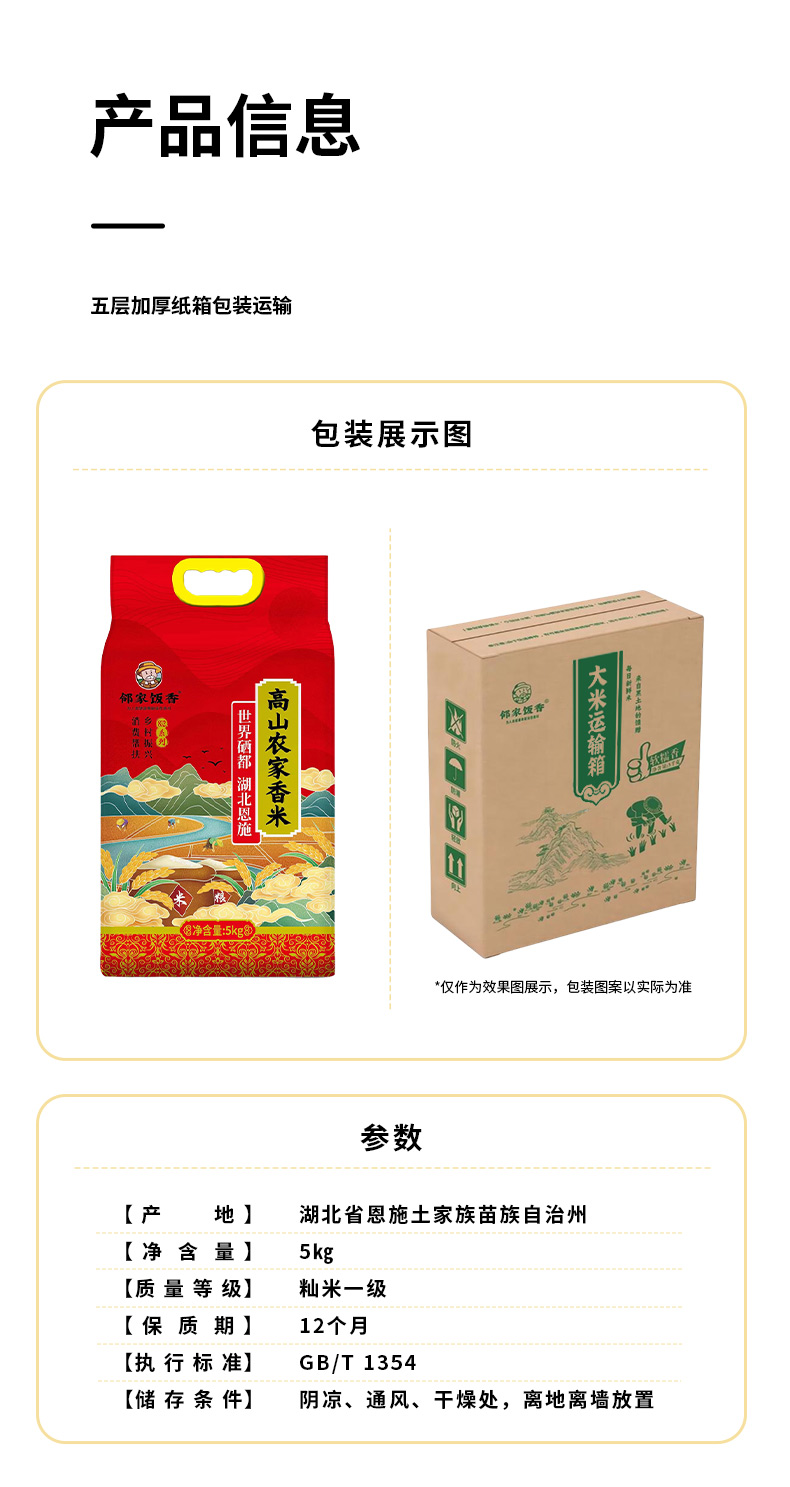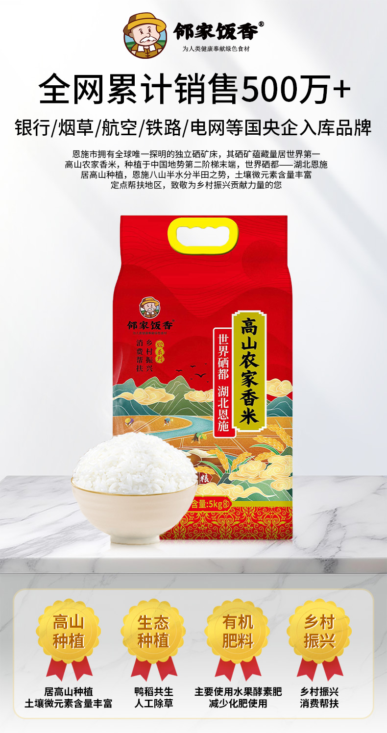 邻家饭香 高山农家香米 5kg/袋 真空双层包装 乡村振兴 消费帮扶 832系列 FP119(QF)