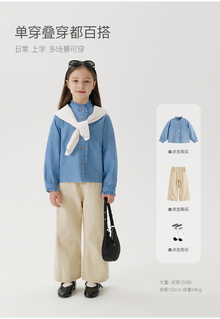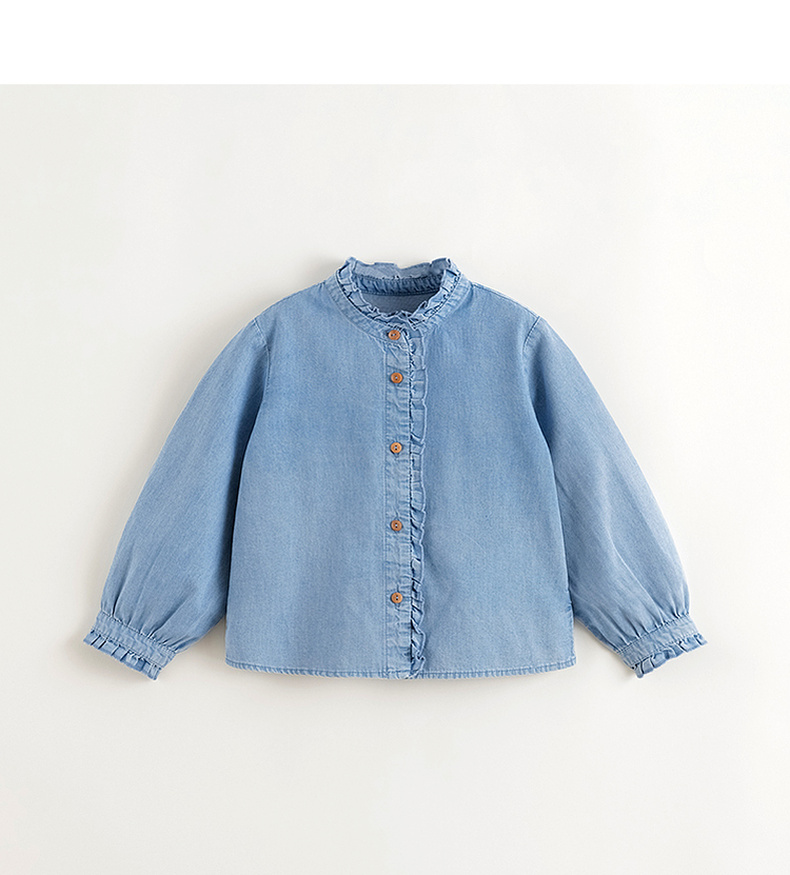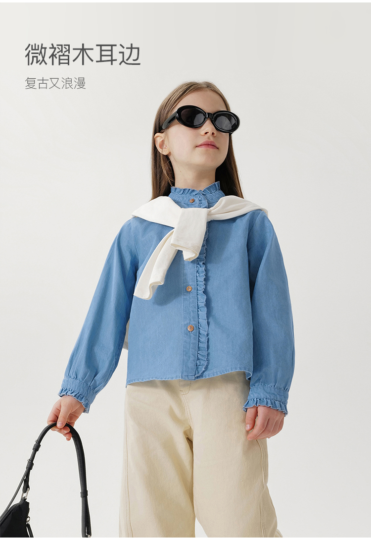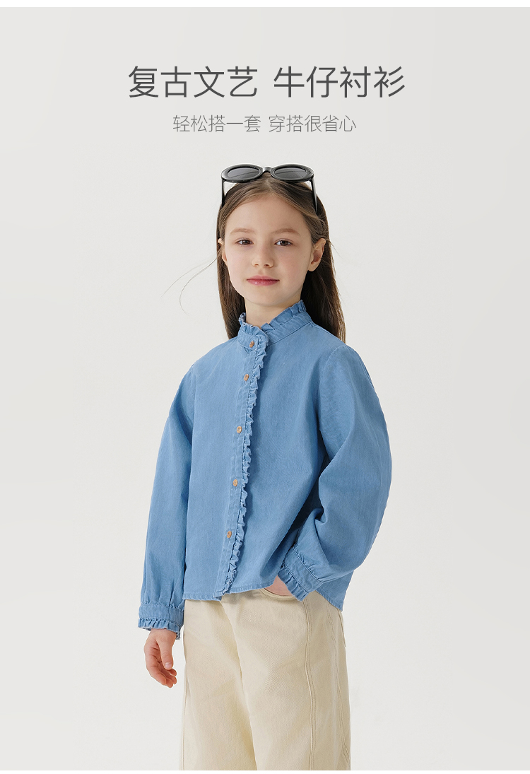 马克珍妮女童复古文艺纯棉牛仔衬衫2025年春装新款250171