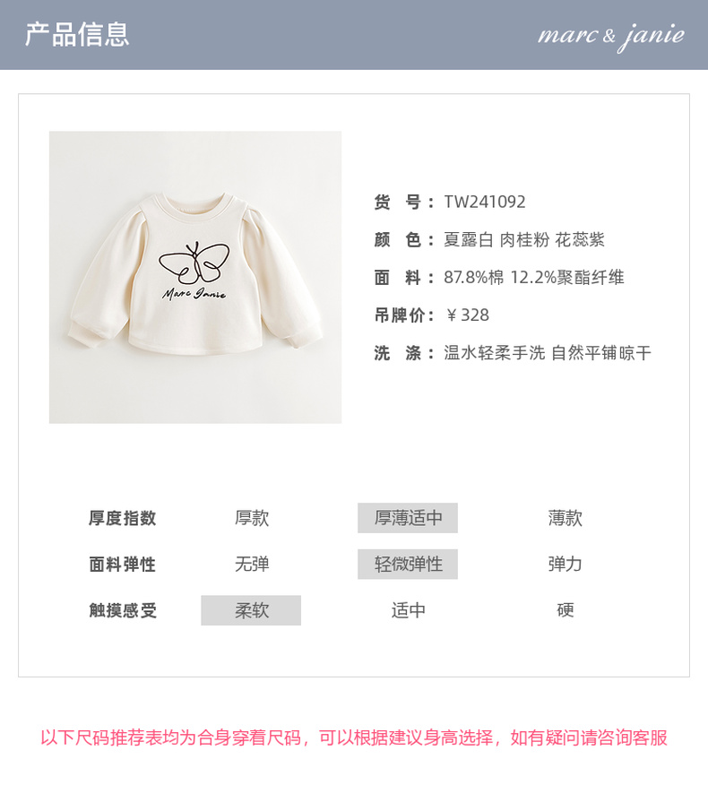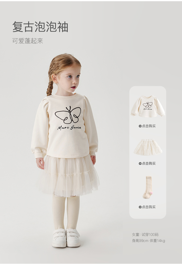 [商场同款]马克珍妮女童蝴蝶印花宽松卫衣儿童上衣秋装新款241092