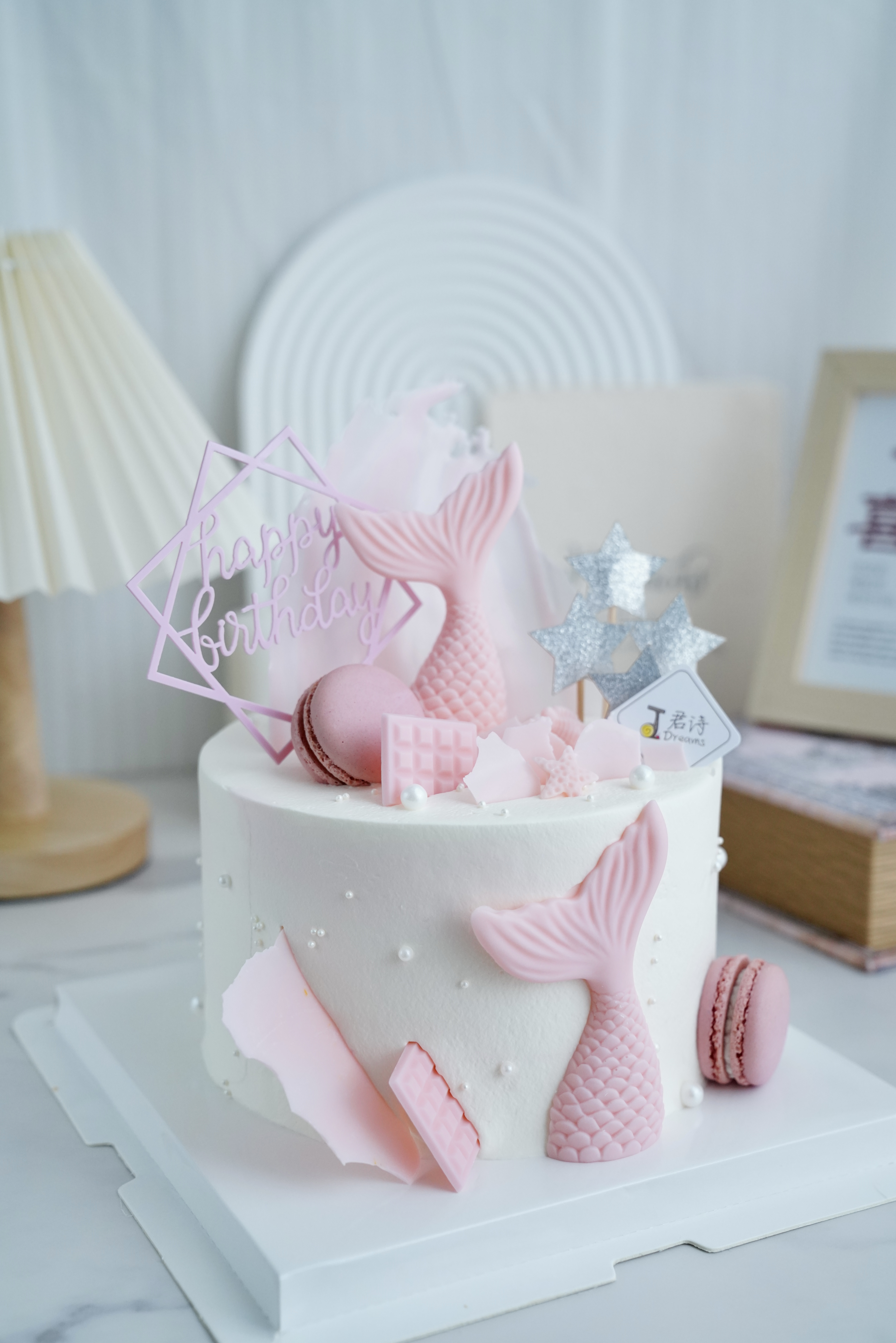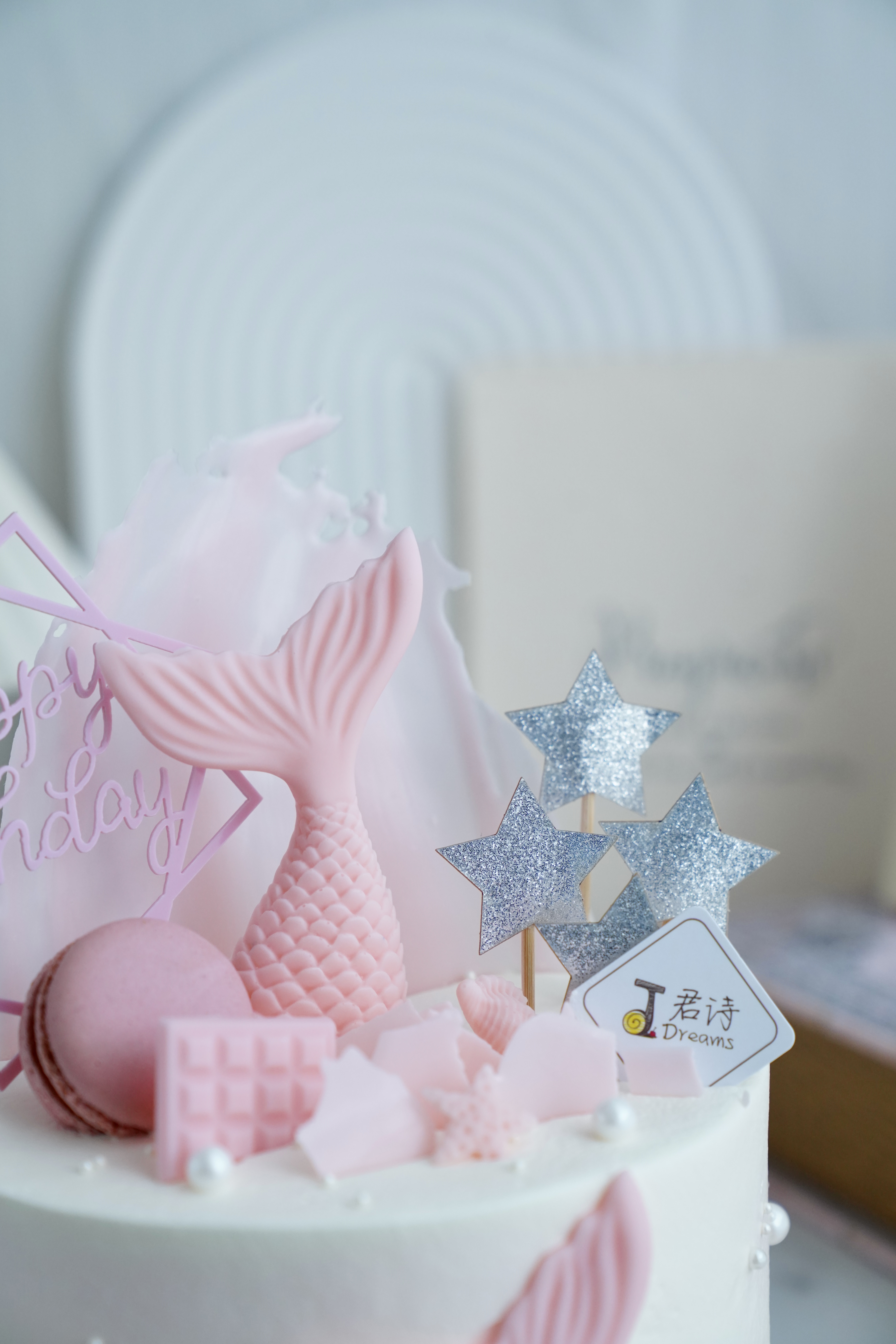 粉粉嫩嫩的美人鱼造型,表面装饰珍珠口感较硬,儿童食用请注意,谨防噎喉