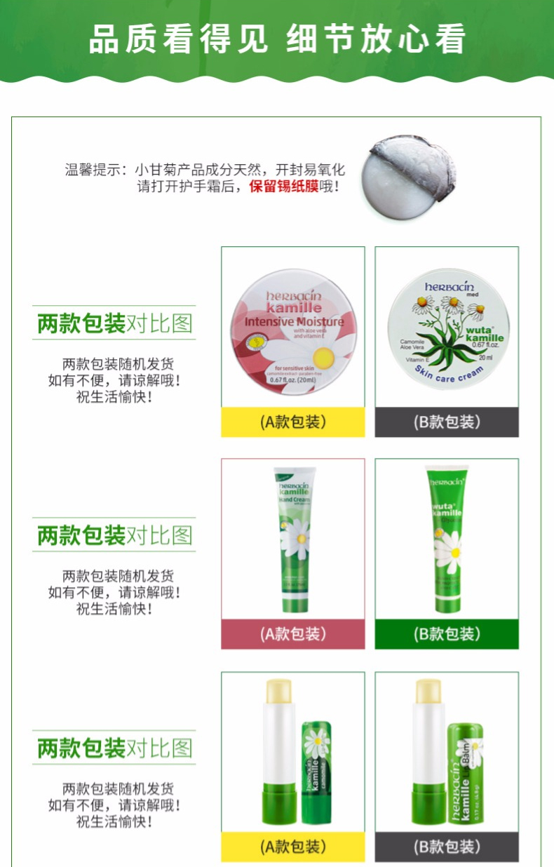 【一般贸易 中文标】德国贺本清 小甘菊唇膏4.8g+经典护手霜20ml 组合装