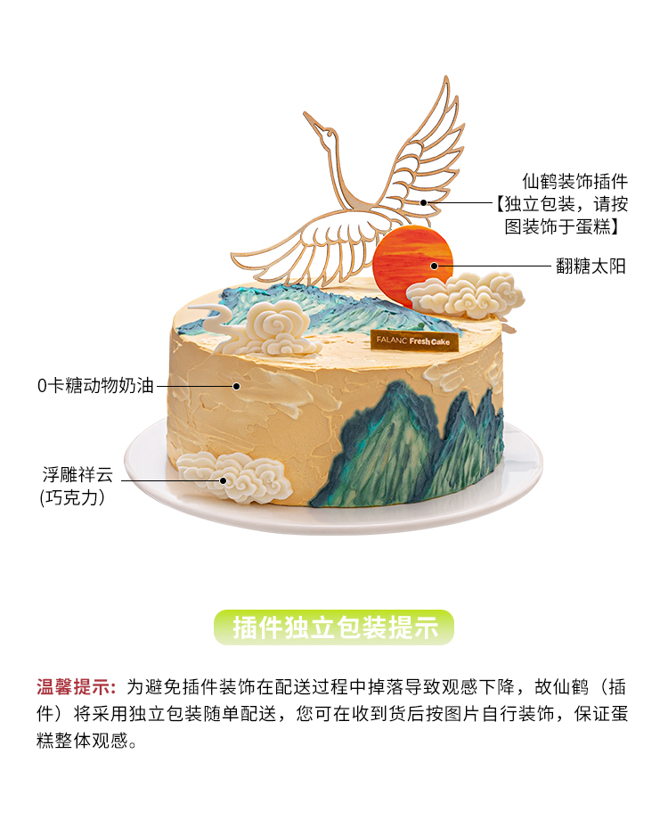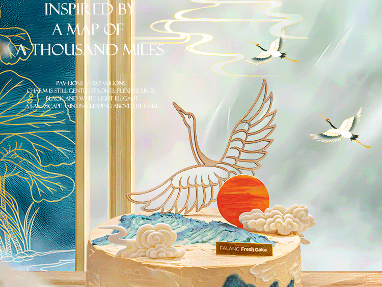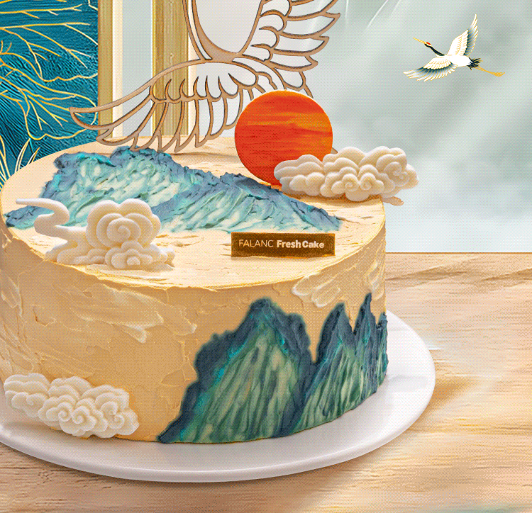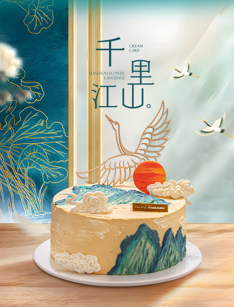 千里江山·鹤寿老人祝寿0卡糖生日蛋糕 | FALANC CAKE