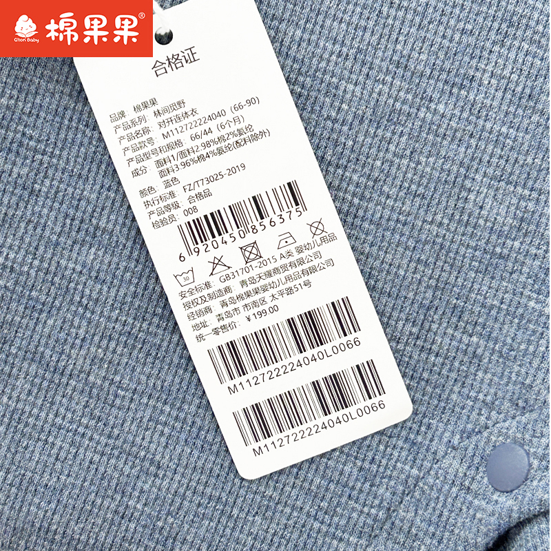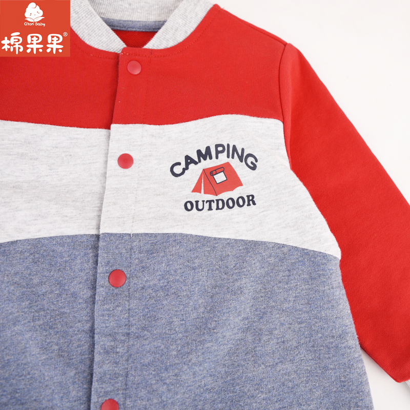 棉果果专柜同款春季新品男童质感华夫格对开连体衣M112722224040