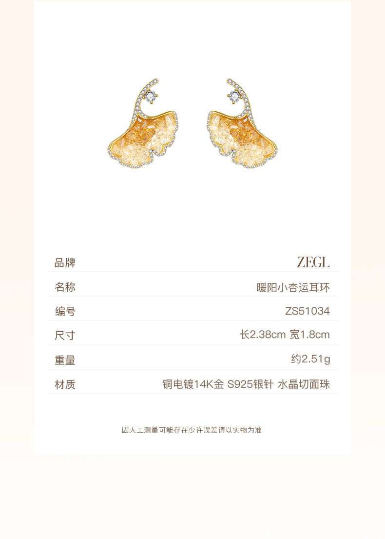 ZEGL设计师橘子花海系列花朵耳环女2024新款爆款耳钉925银针耳饰