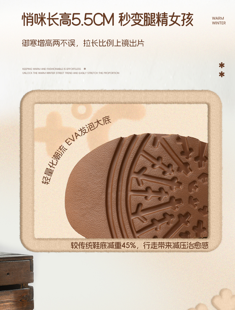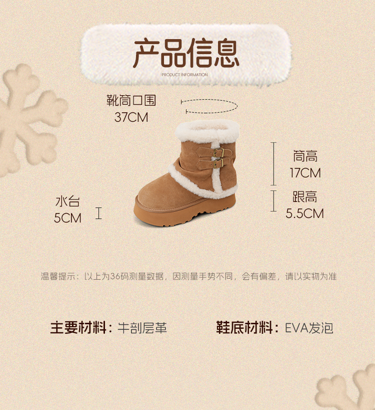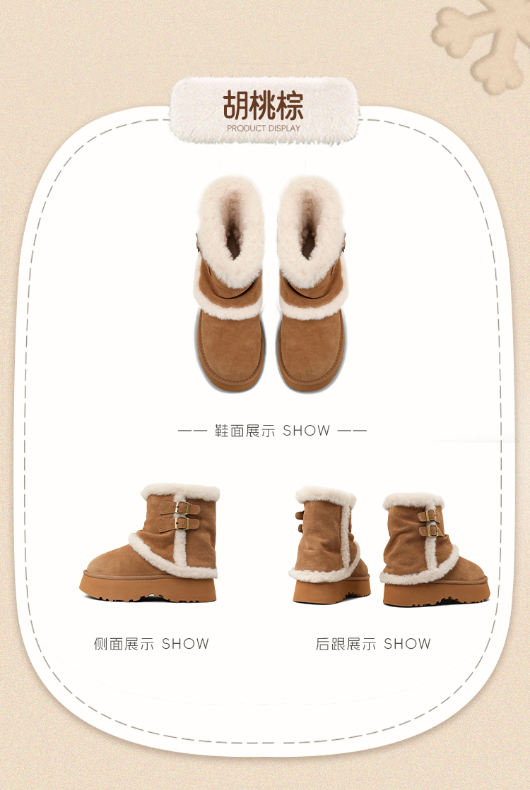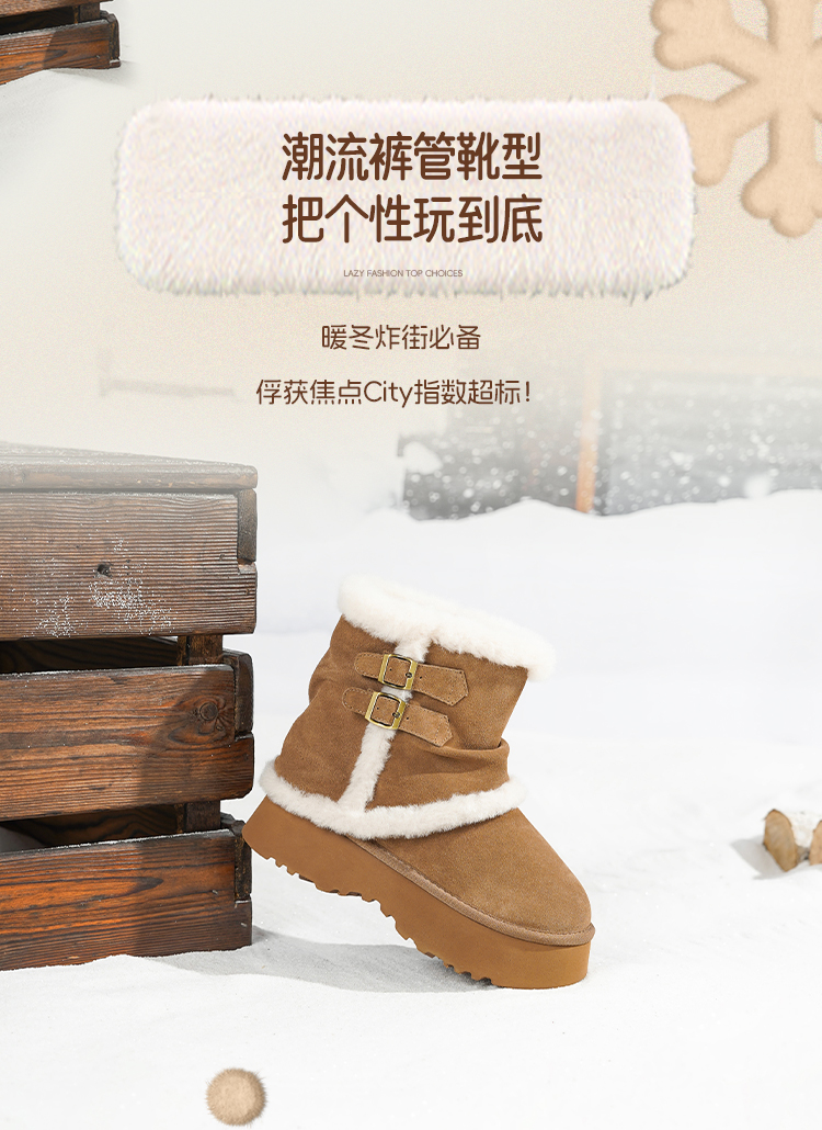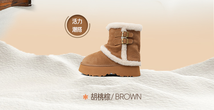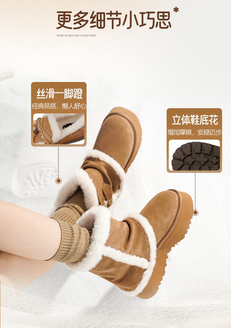 预售|Safiya/索菲娅2025冬季加绒防寒厚底增高中筒百搭裤管保暖雪地靴SFD411AM01