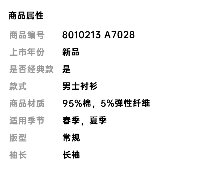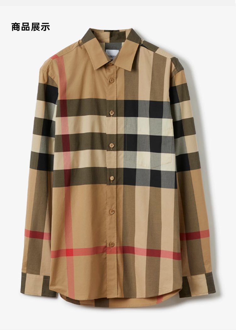 【二】BURBERRY 巴宝莉 男士格纹弹力棉府绸长袖衬衫 8010213 A7028