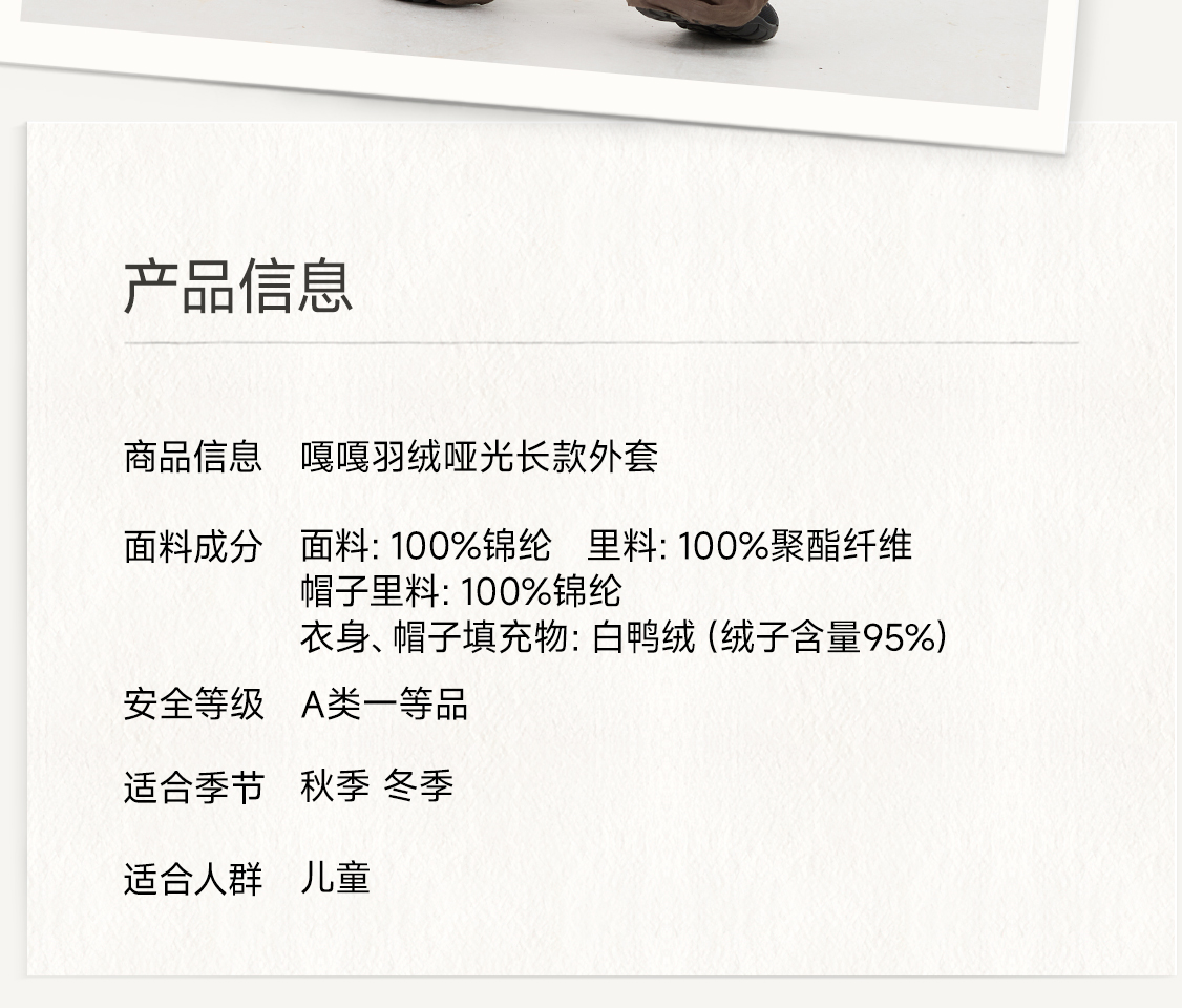 【Q21品牌直发】嘎嘎羽绒哑光长款外套