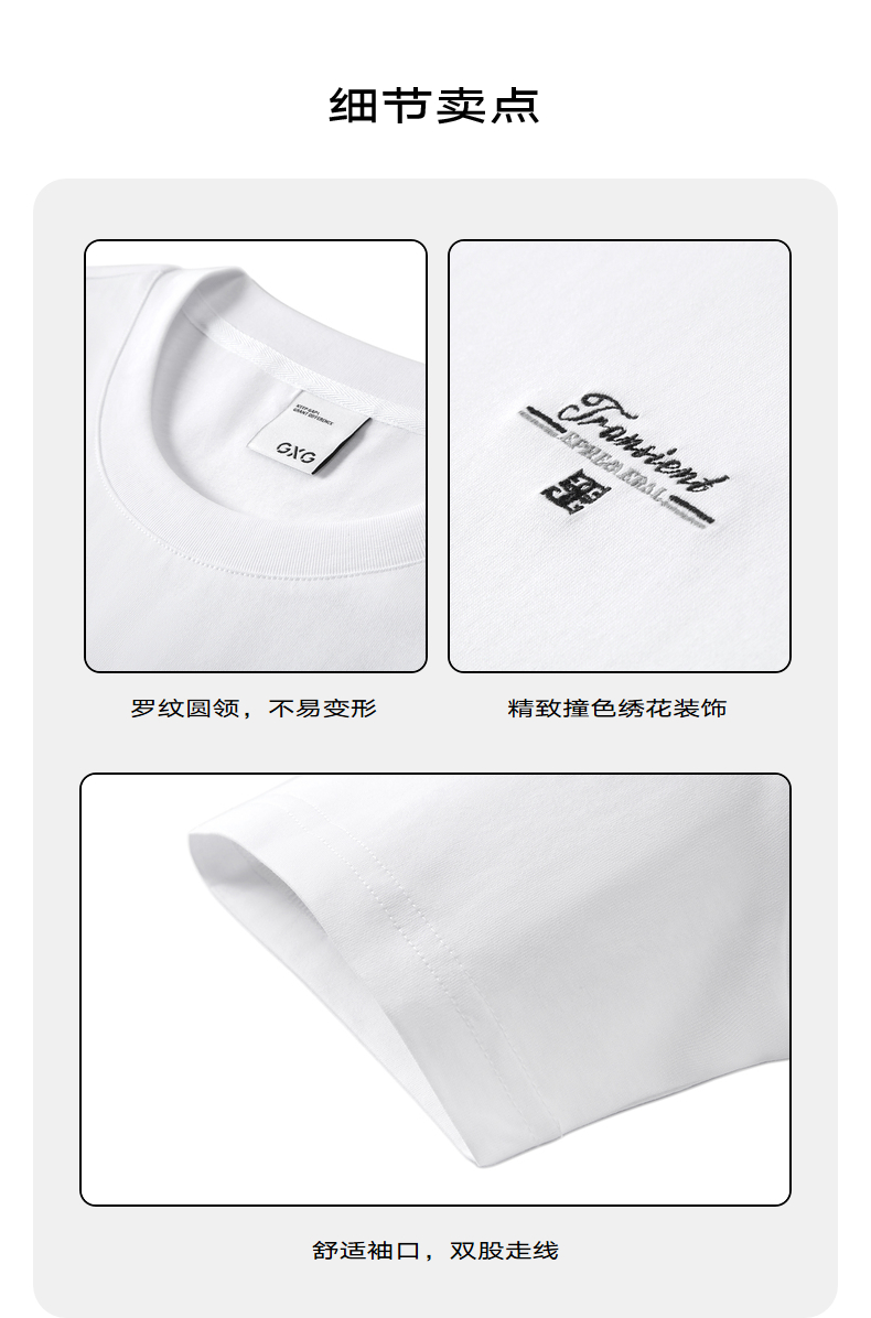 GXG男装 双色精致绣花休闲宽松圆领短袖T恤男生上衣 24年夏季热卖