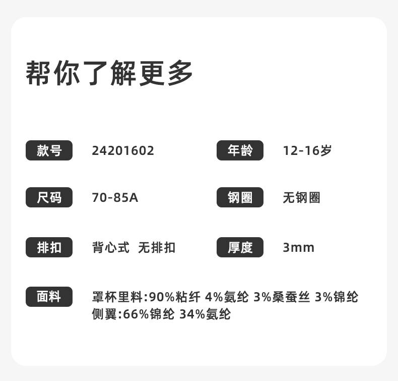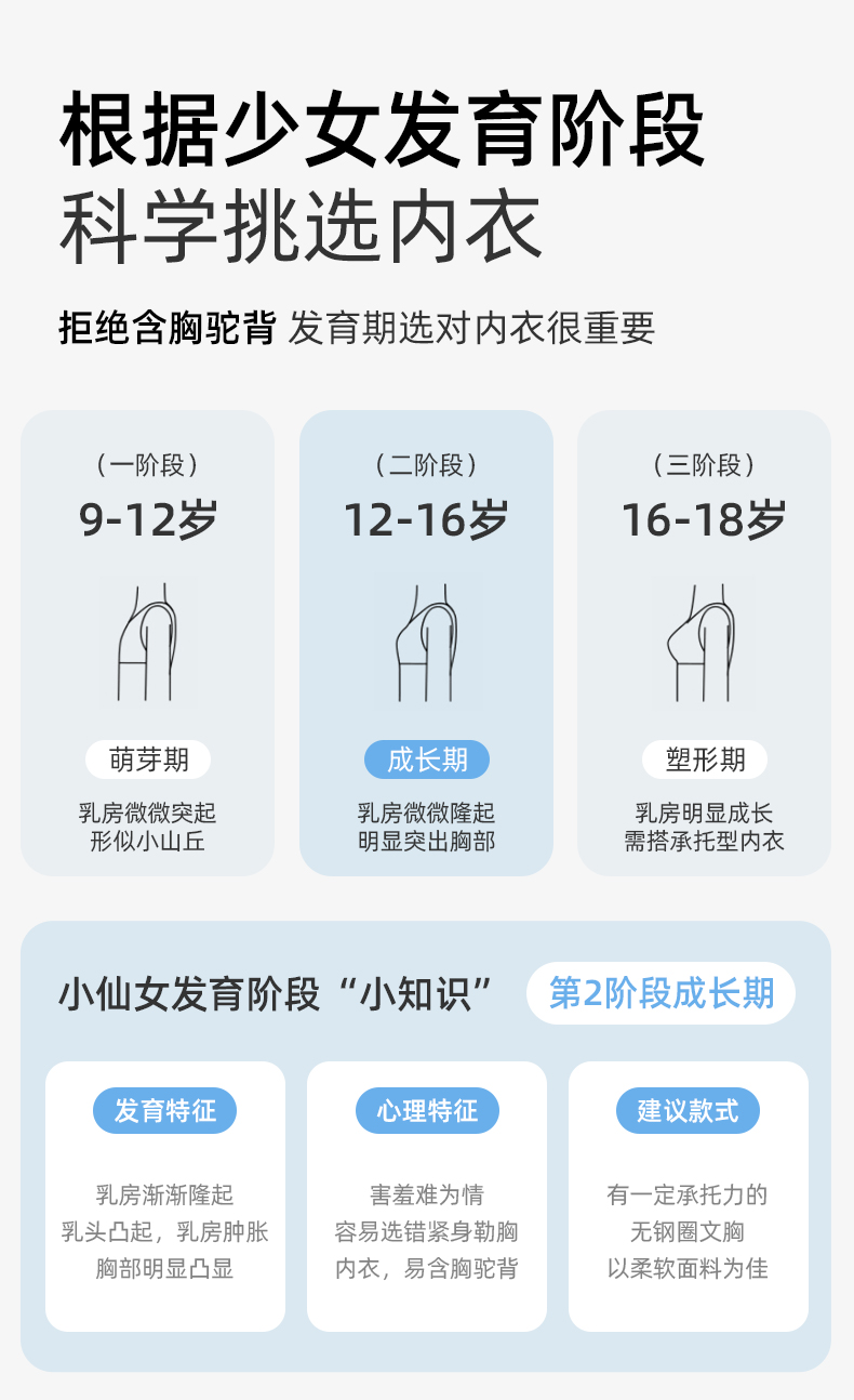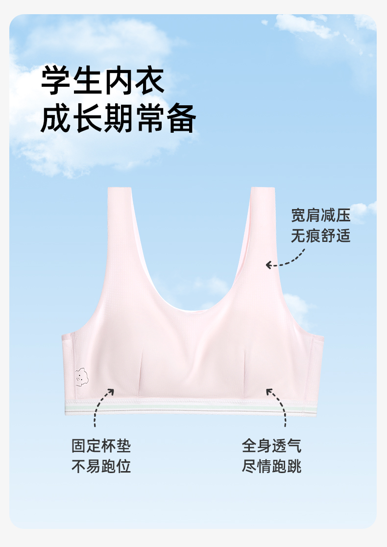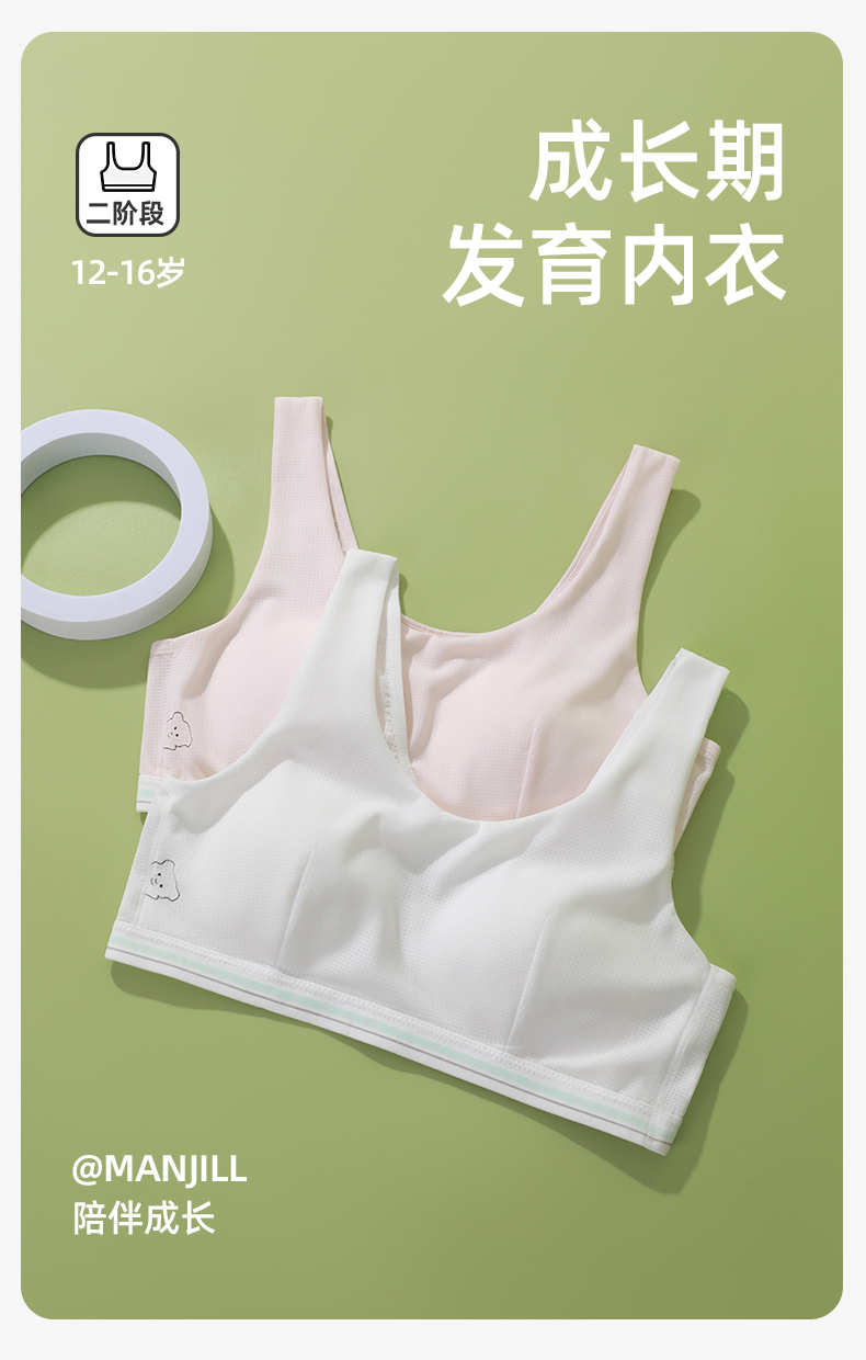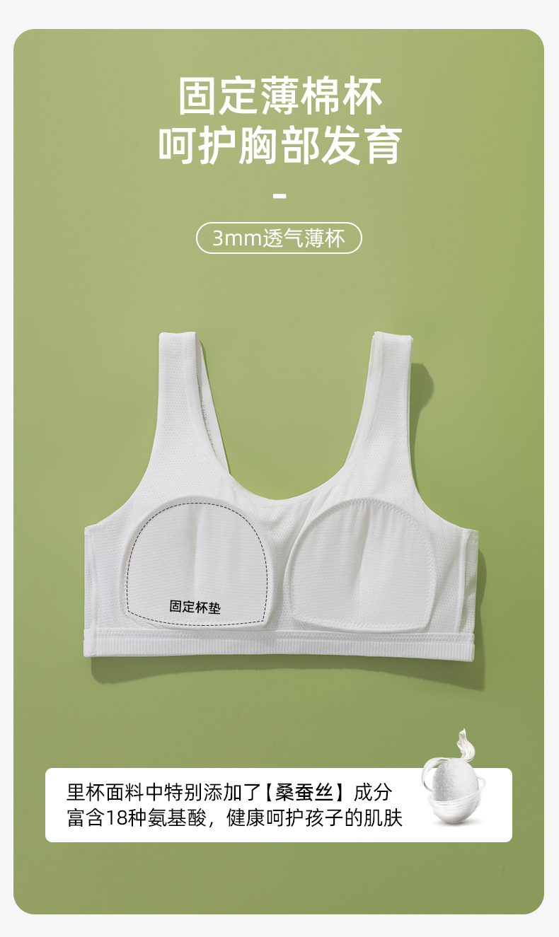 【买2送1】熳洁儿 二阶段12-16岁桑蚕丝少女围背心式固定杯垫商场同款24201602