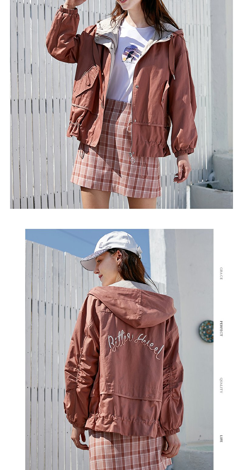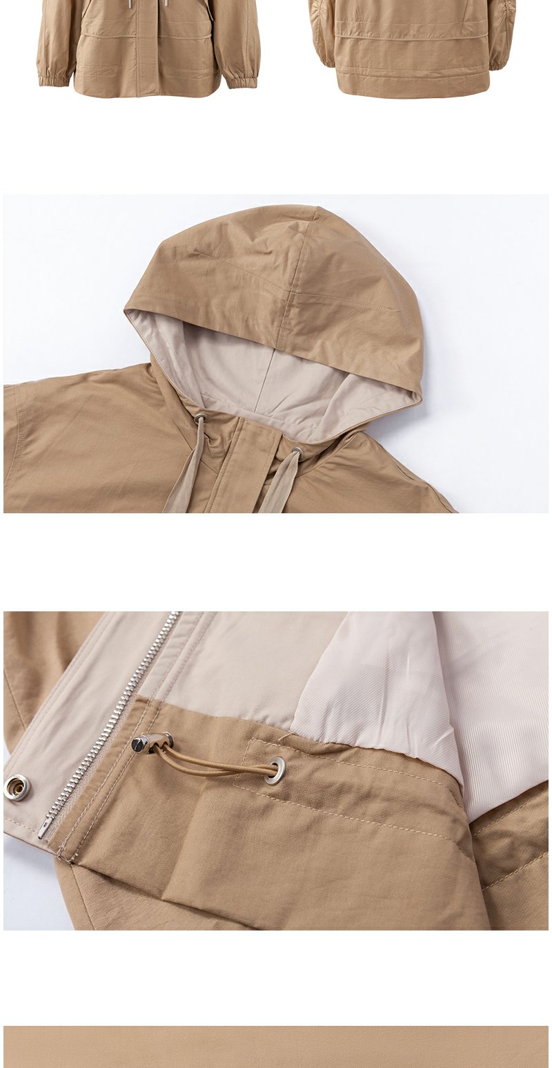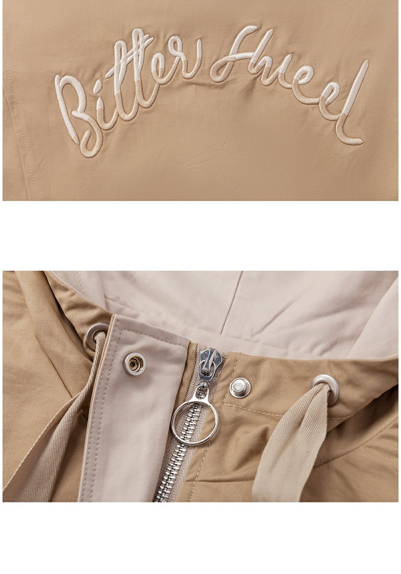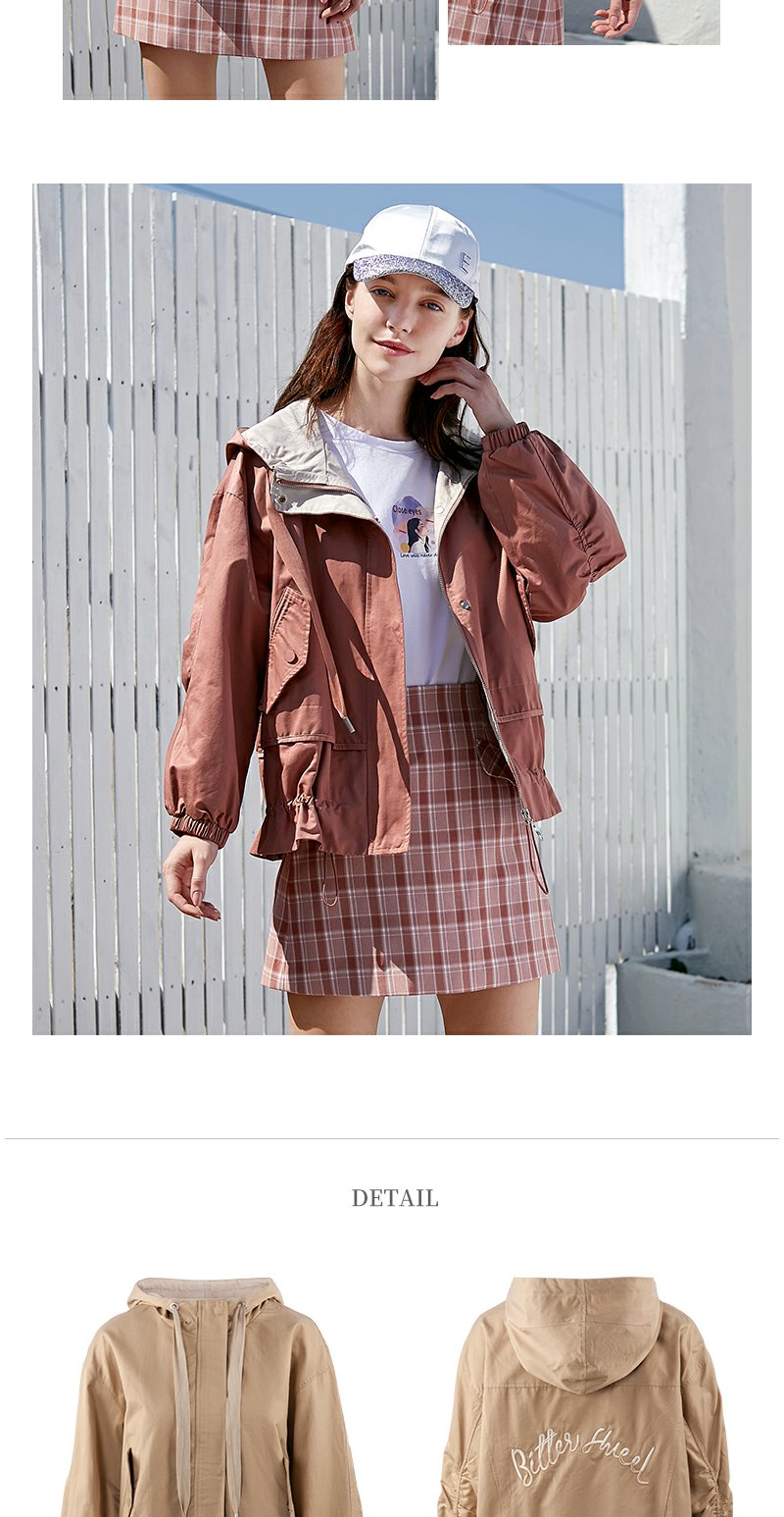 欧芮儿春新品长袖宽松短款拉链刺绣连帽风衣女工风外套