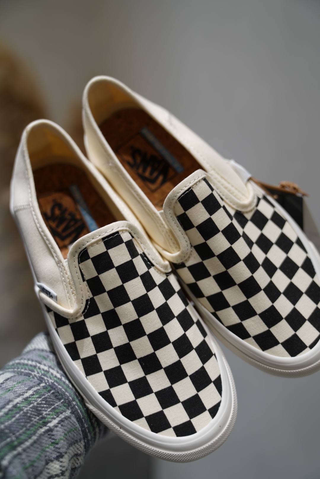 VAN*软木塞棋盘格滑板鞋,超百搭