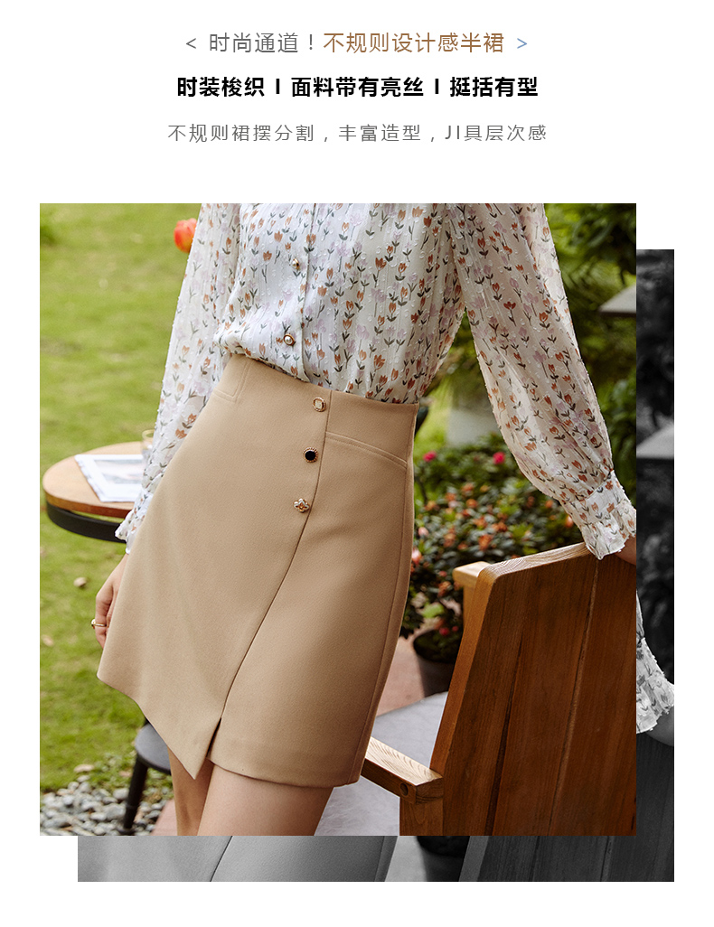 欧芮儿半身裙女新款2021不规则设计感薄款a字高腰显瘦裙子