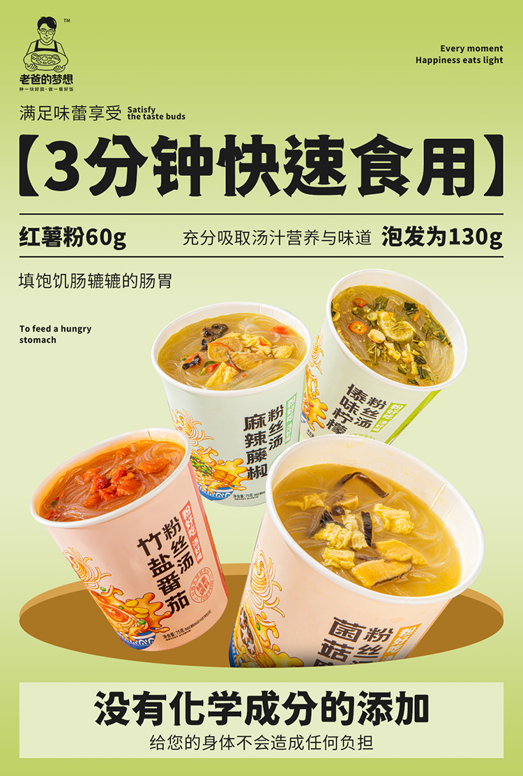 老爸的梦想纯素有机红薯粉丝汤菌菇番茄麻辣藤椒傣味柠檬速食宵夜