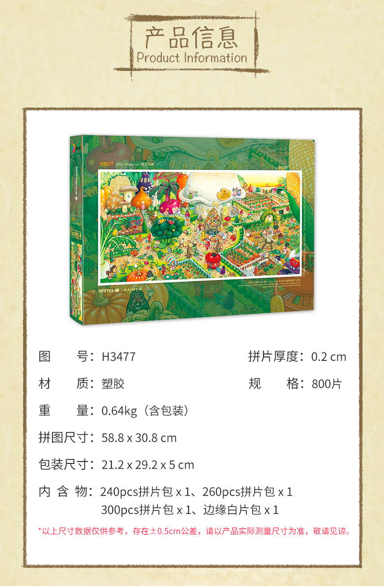 【折扣商品 不退不换】800片 平面塑料拼图 H3477 shinji yamamoto-蔬菜之国