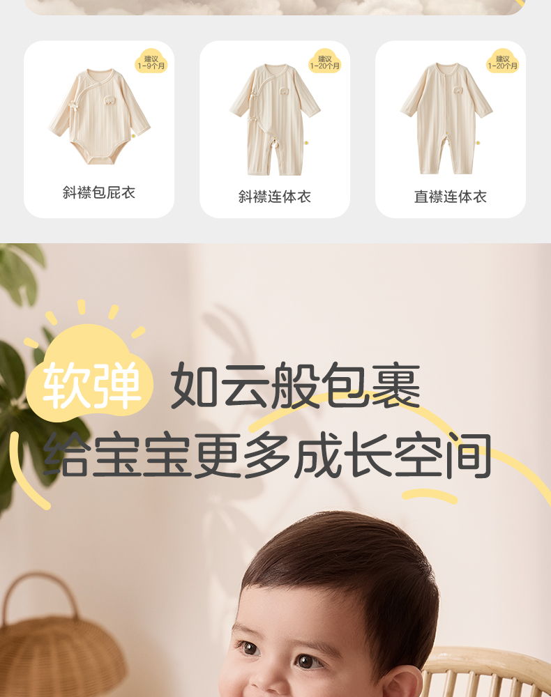 粒粒阳光婴儿哈衣新生儿衣服宝宝连体衣长袖包屁衣2025新