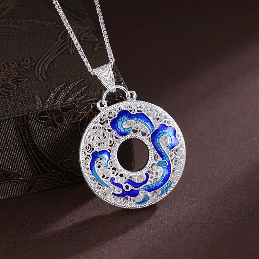 子佩集S990银【云涌龙舞】吊坠【MXDZ025】纯银花丝珐琅彩平安扣(不含链)2412