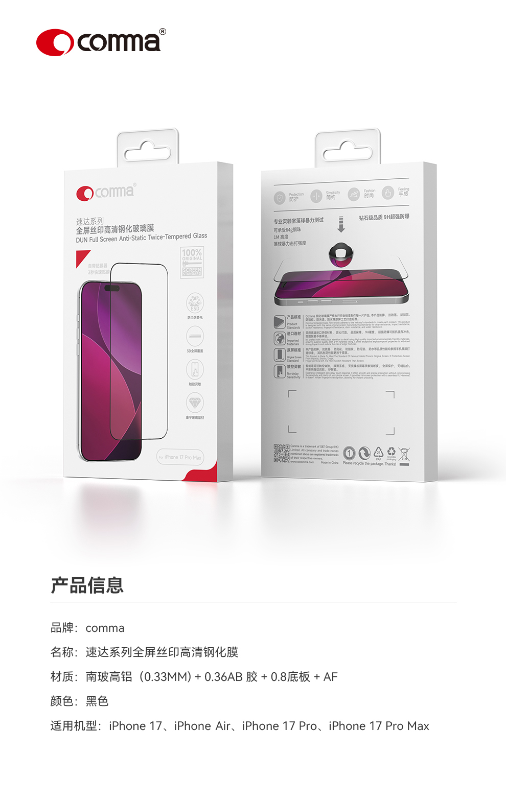 COMMA珂玛 iPhone 系列 速达系列全屏丝印高清钢化玻璃膜-17 系列