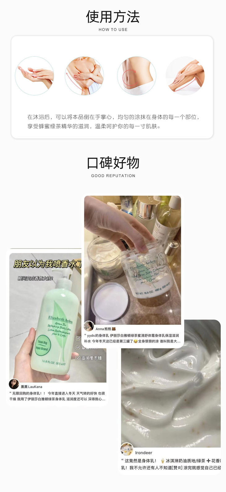 老米优品 /【保税仓直发-特价】伊丽莎白雅顿绿茶身体乳500ml/绿茶蜜滴舒体霜 500ml