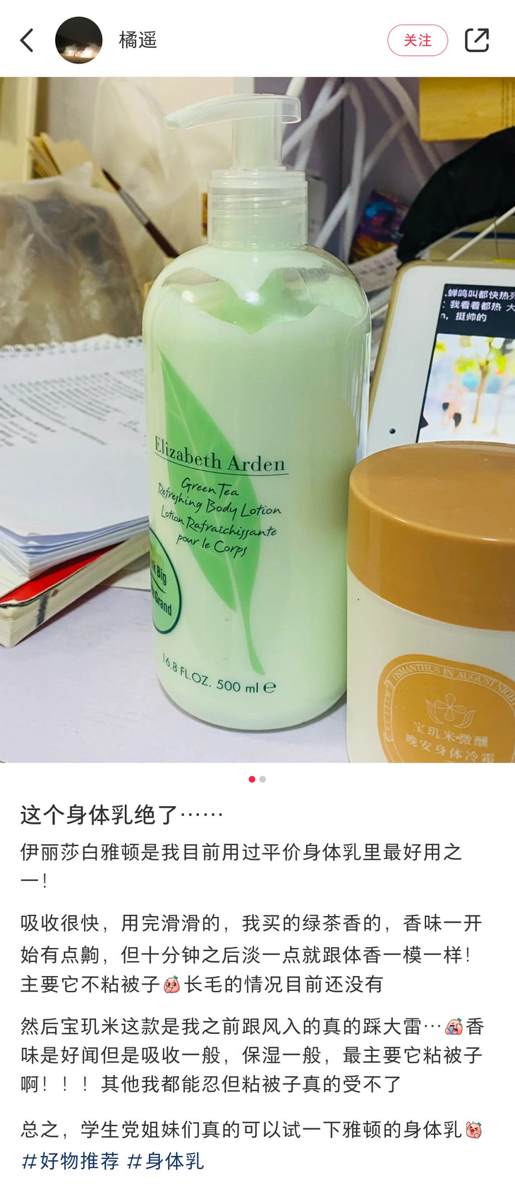 推荐两款雅顿绿茶身体乳,是他家王牌产品!味道跟雅顿家绿茶香水一样,清新绿茶味,茶香四溢!