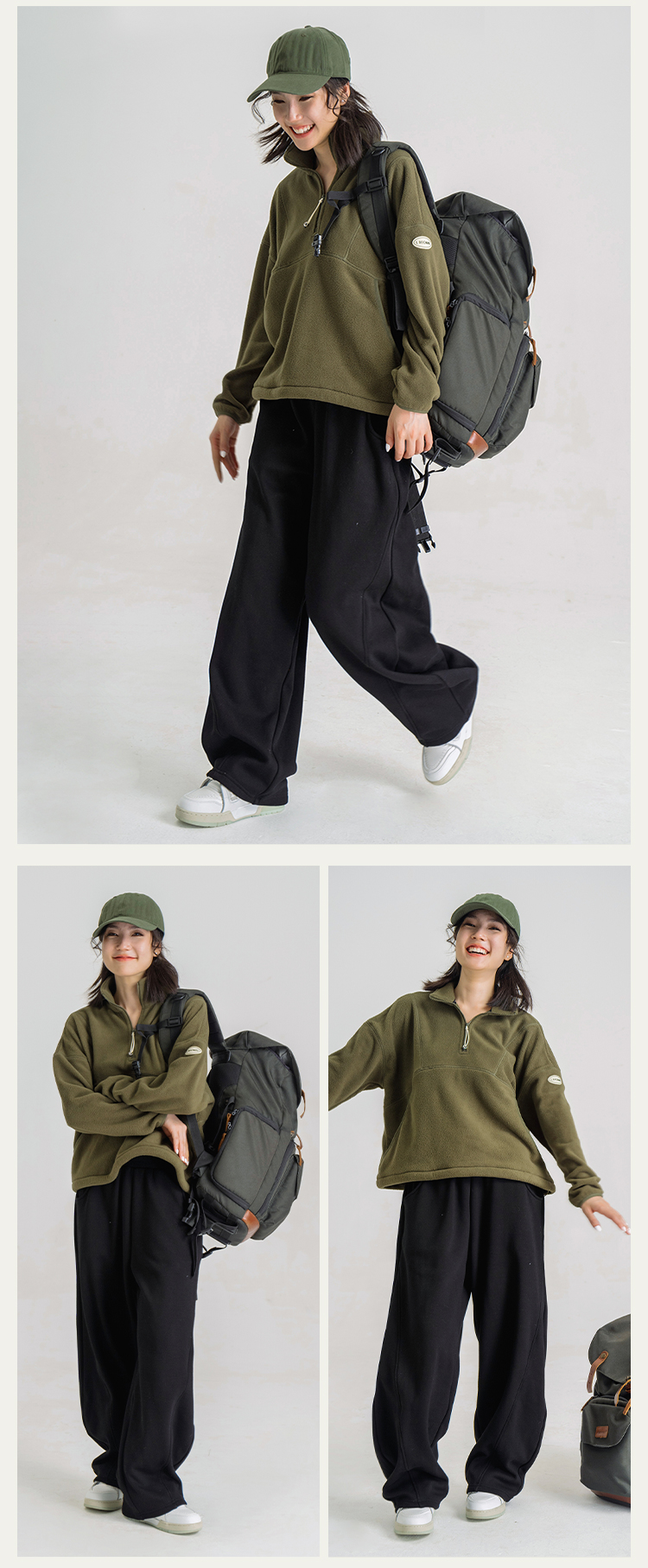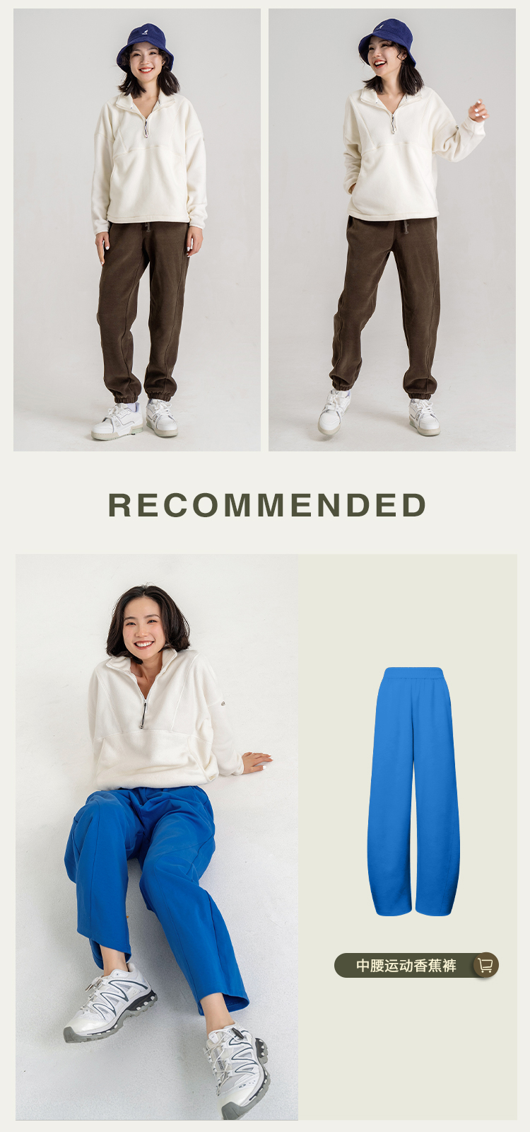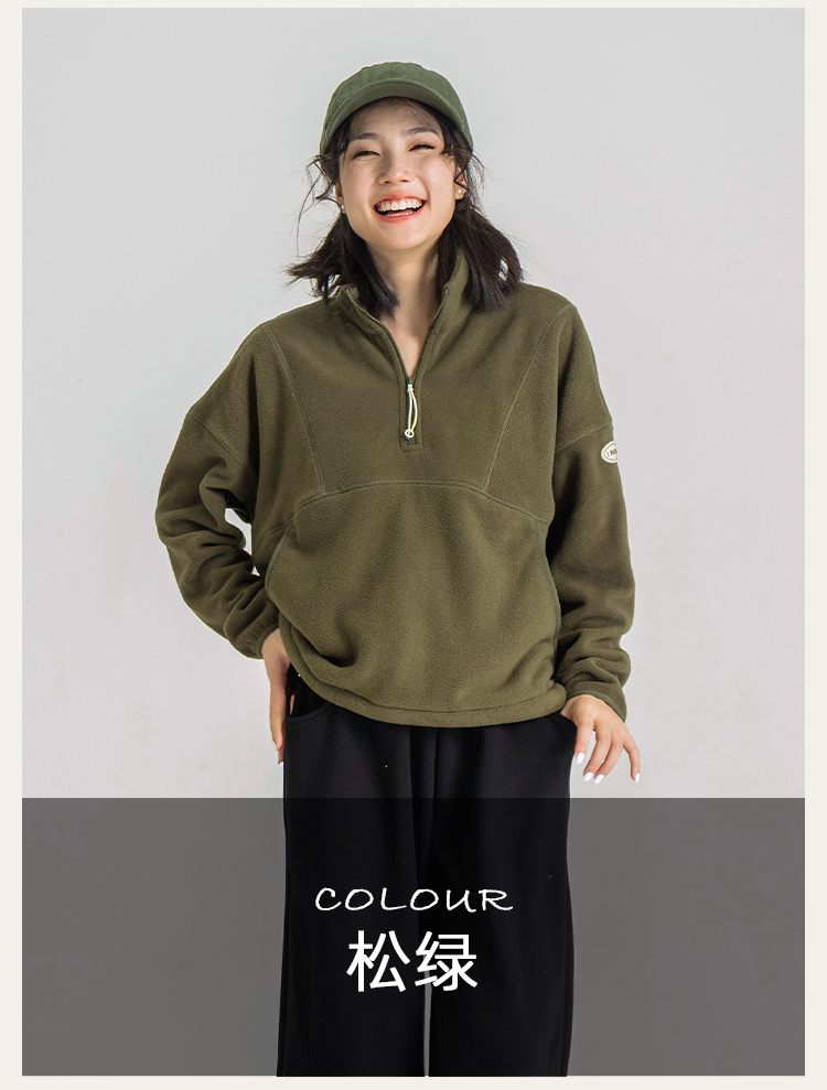 【羊羔绒】摇粒绒宽松套头卫衣 宽松显瘦半拉链外套 可立领可翻领上衣