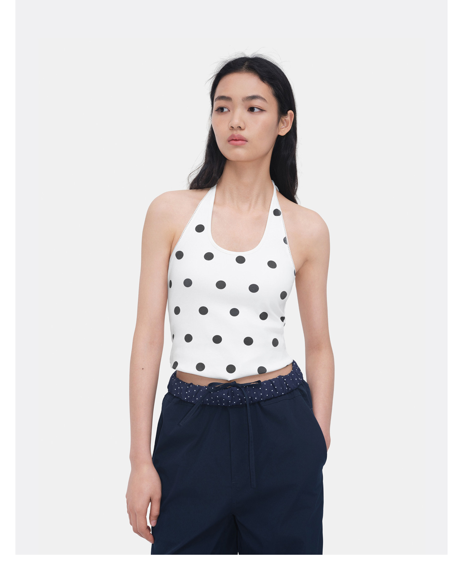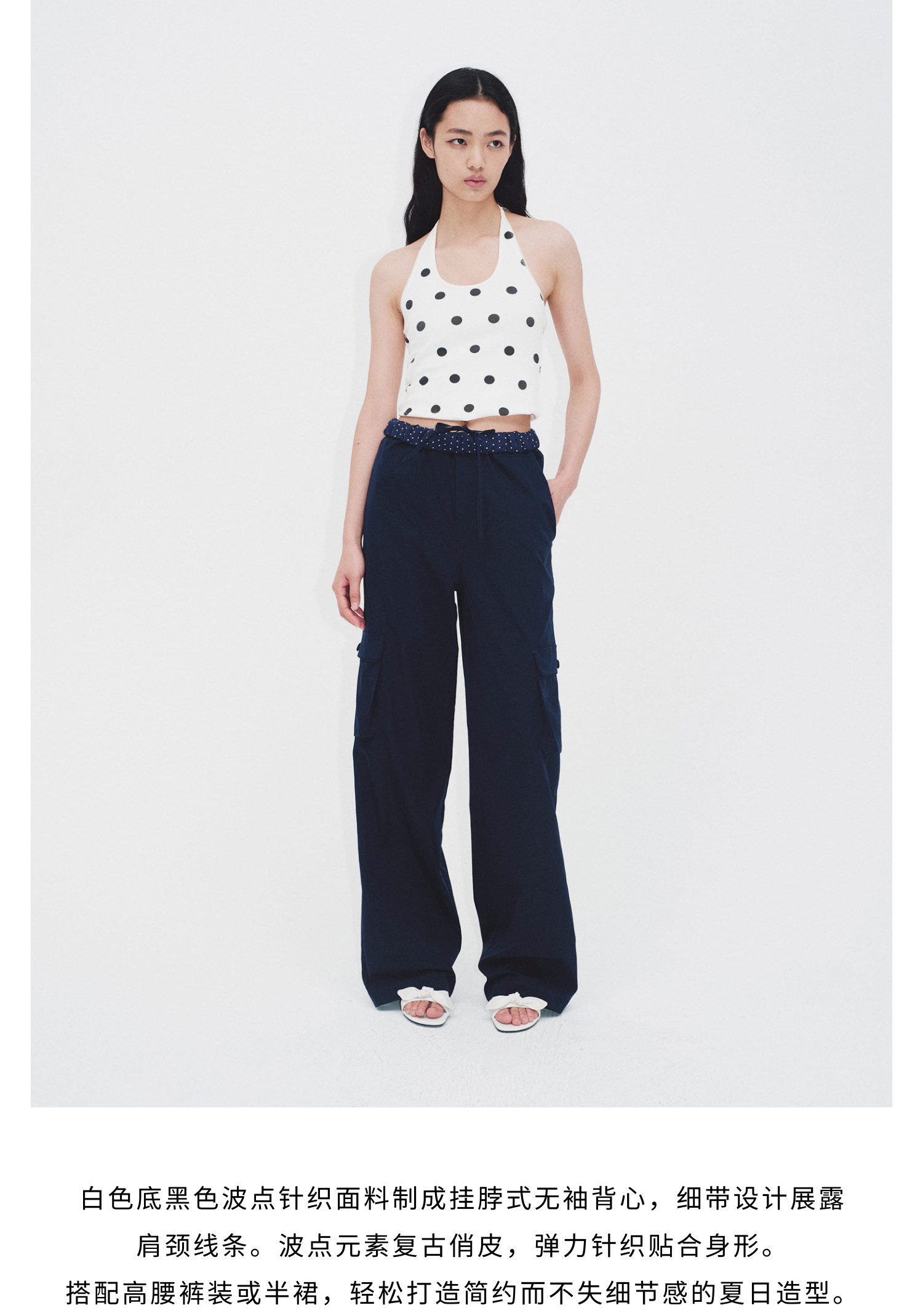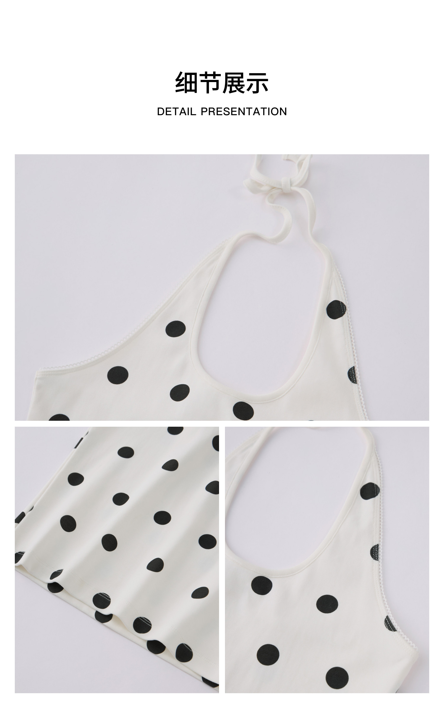 HERLIAN 2026年春夏新品波点印花百搭挂脖修身女士针织吊带