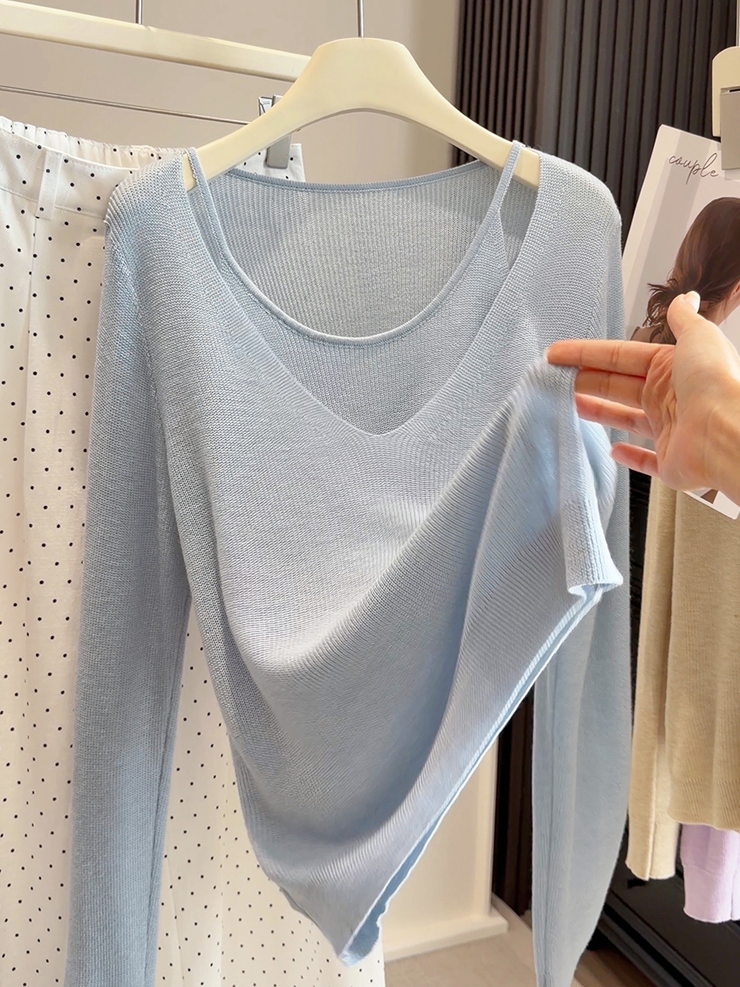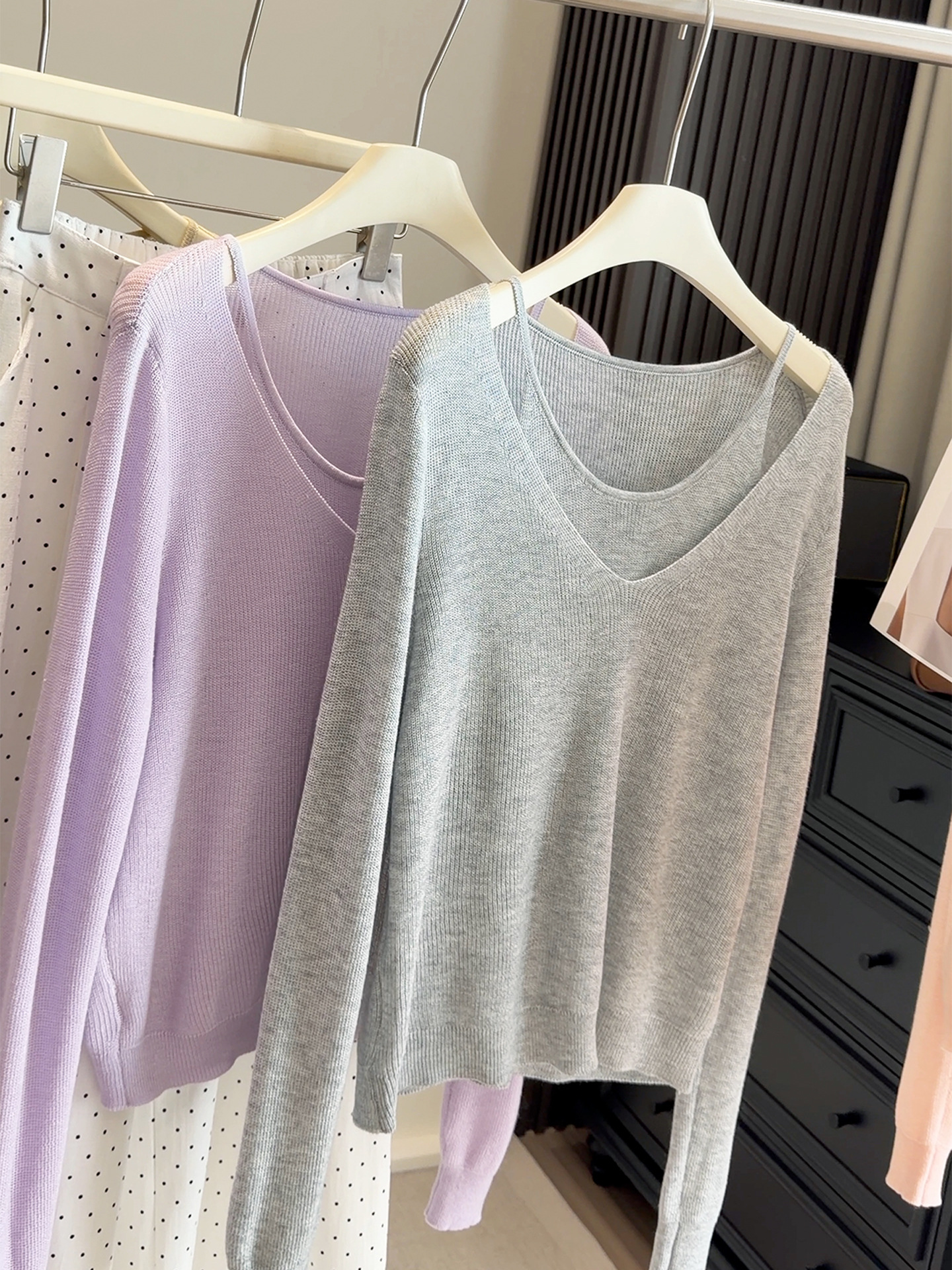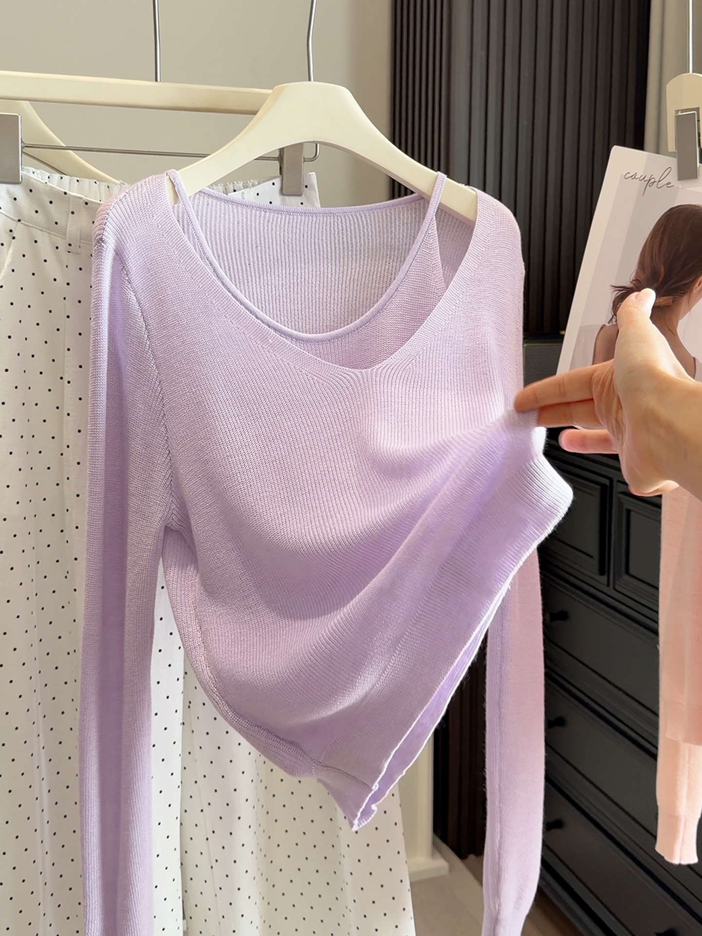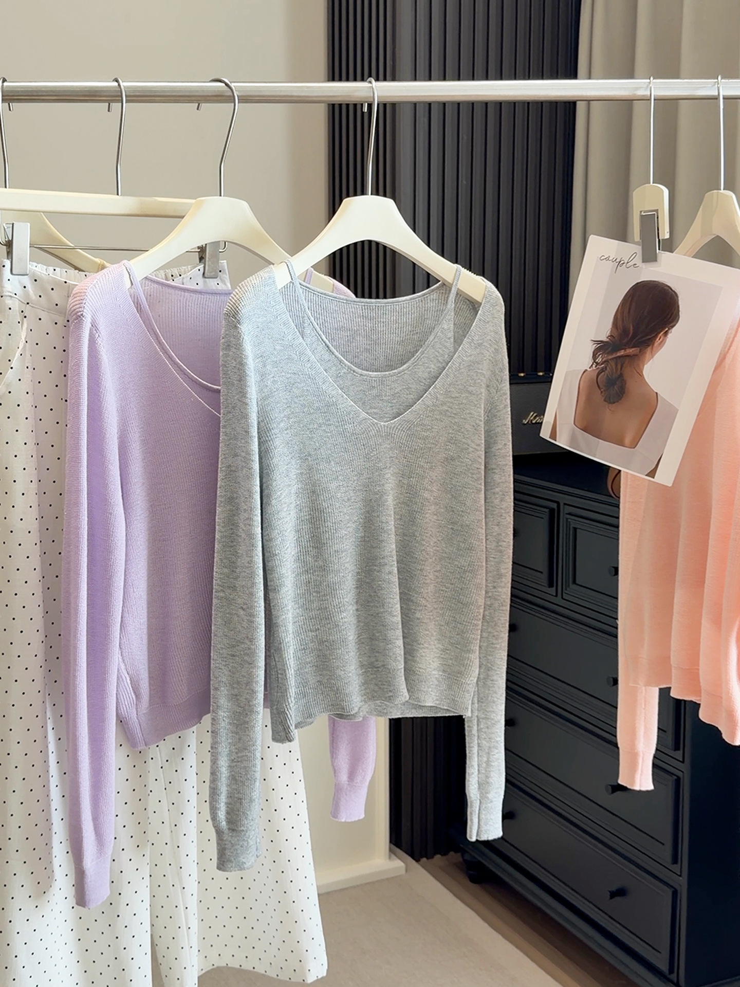 春季【韩系假两件针织衫】新款巨好看长袖薄款软糯毛衣打底衫