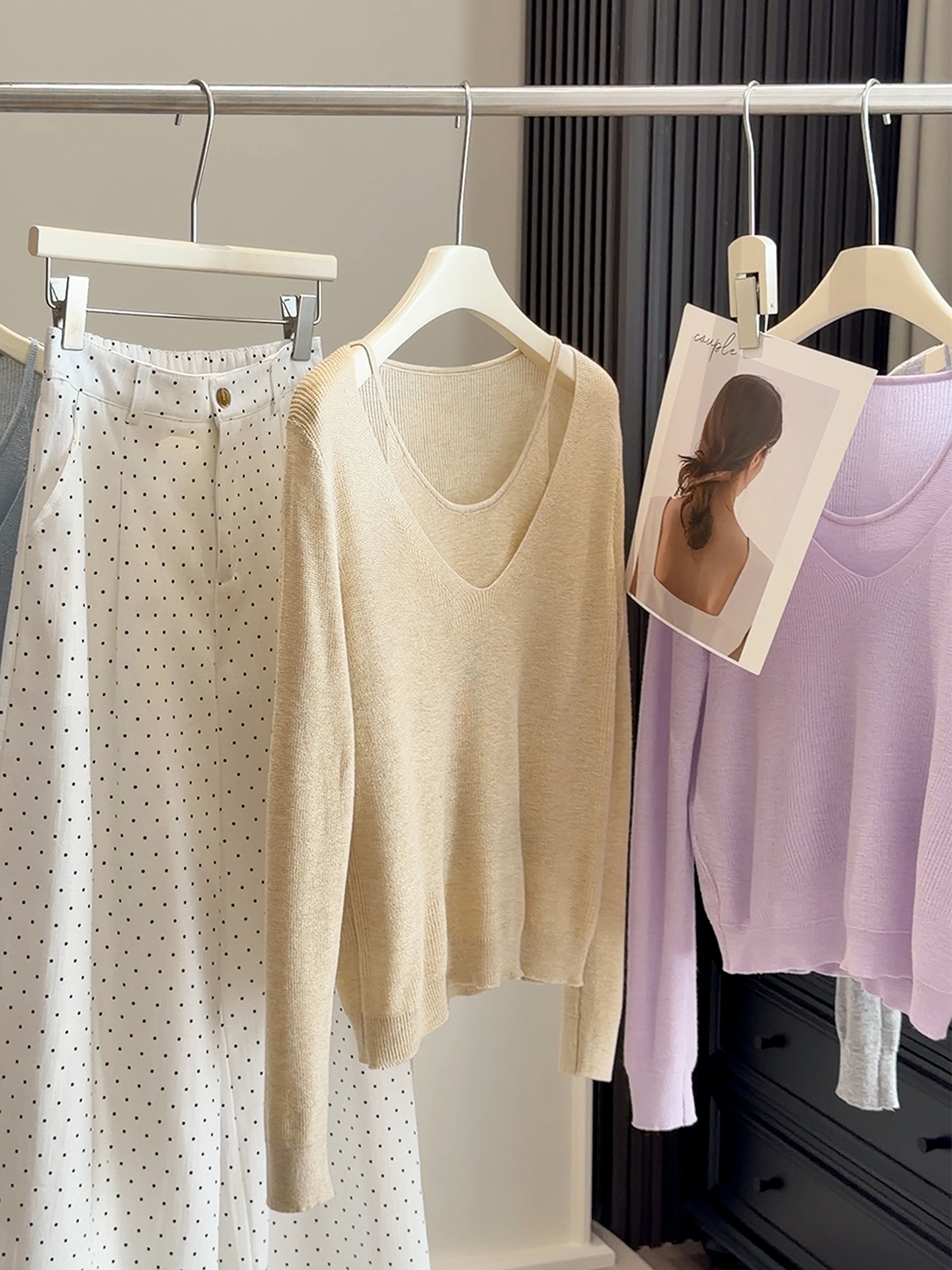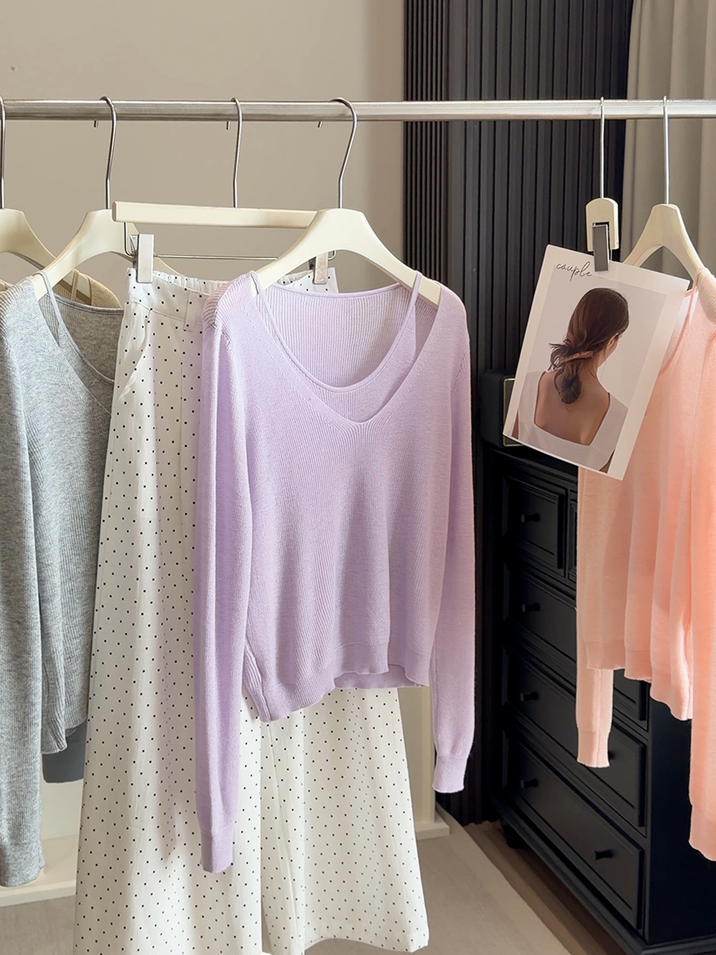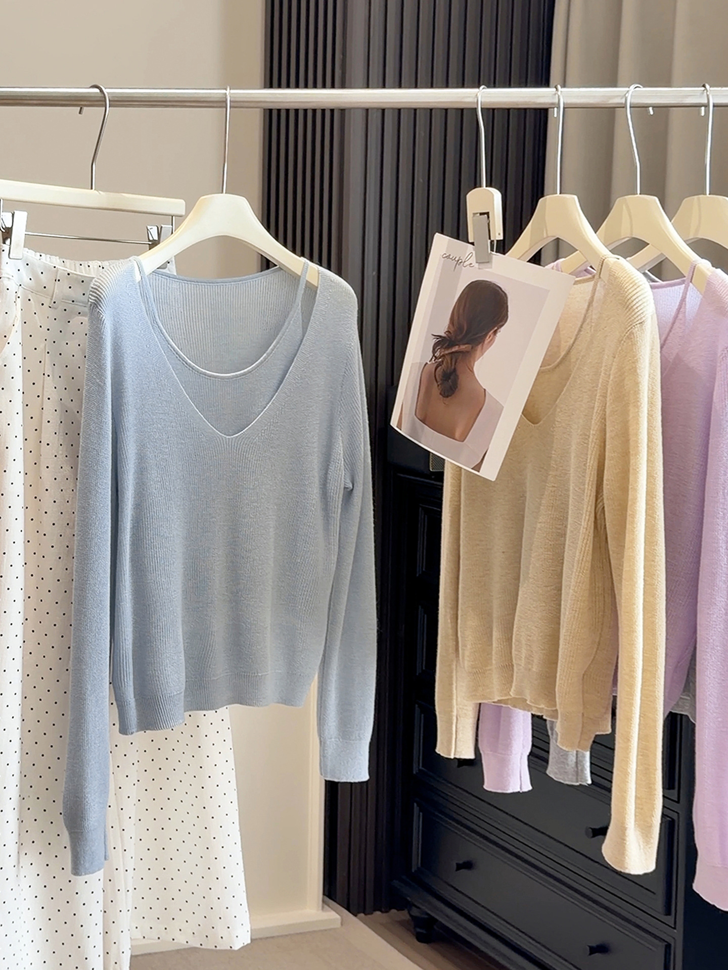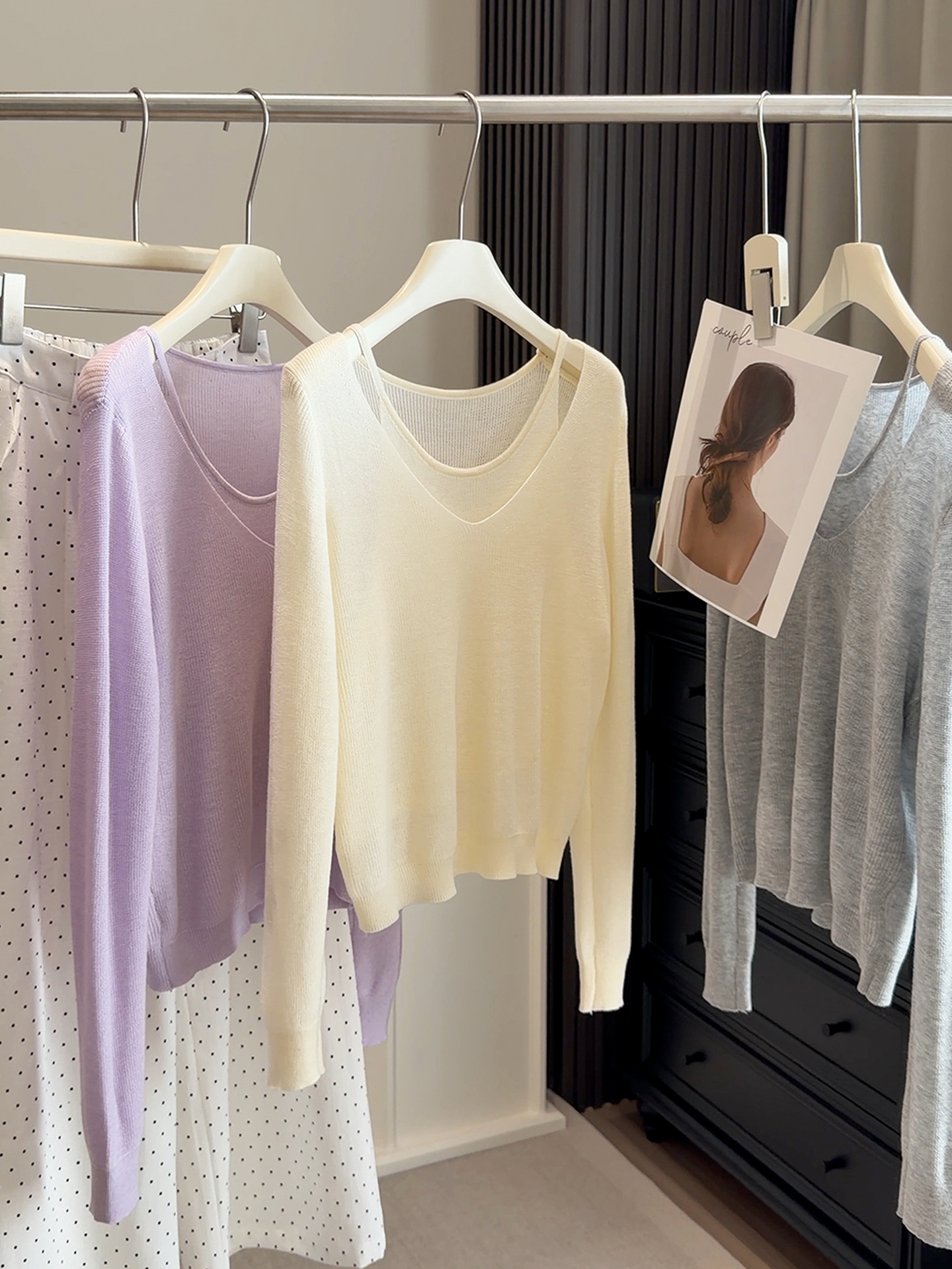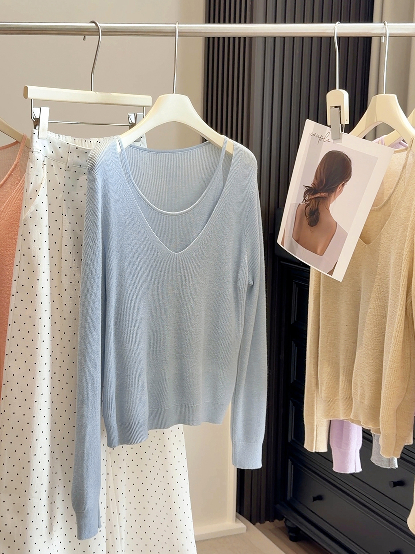 春季【韩系假两件针织衫】新款巨好看长袖薄款软糯毛衣打底衫