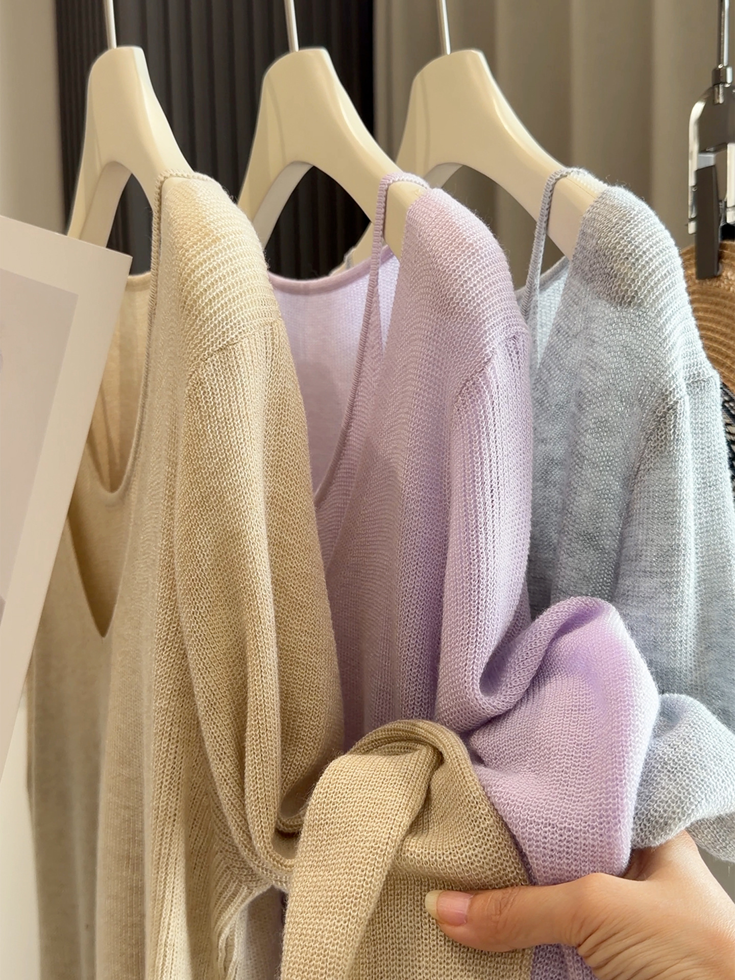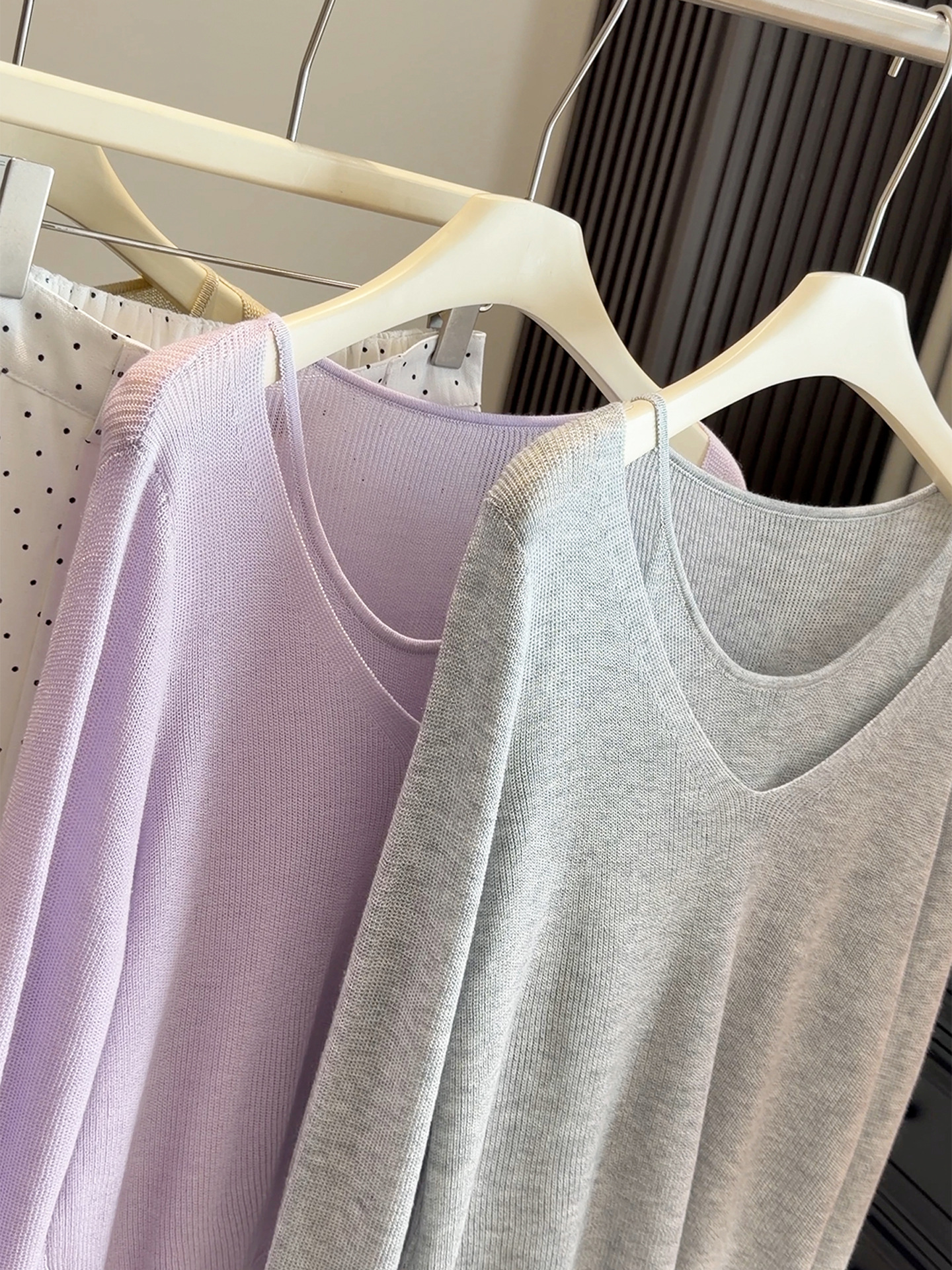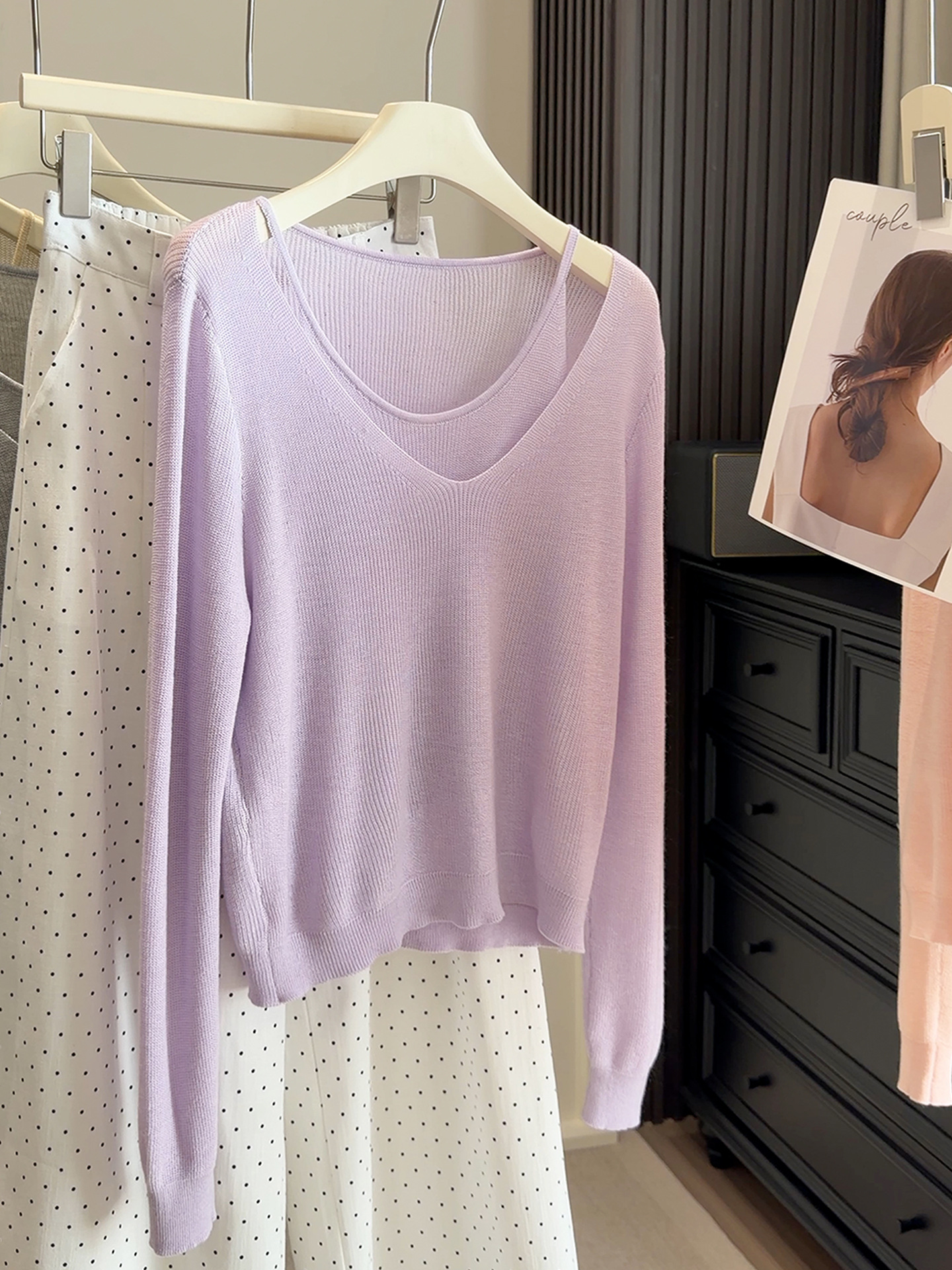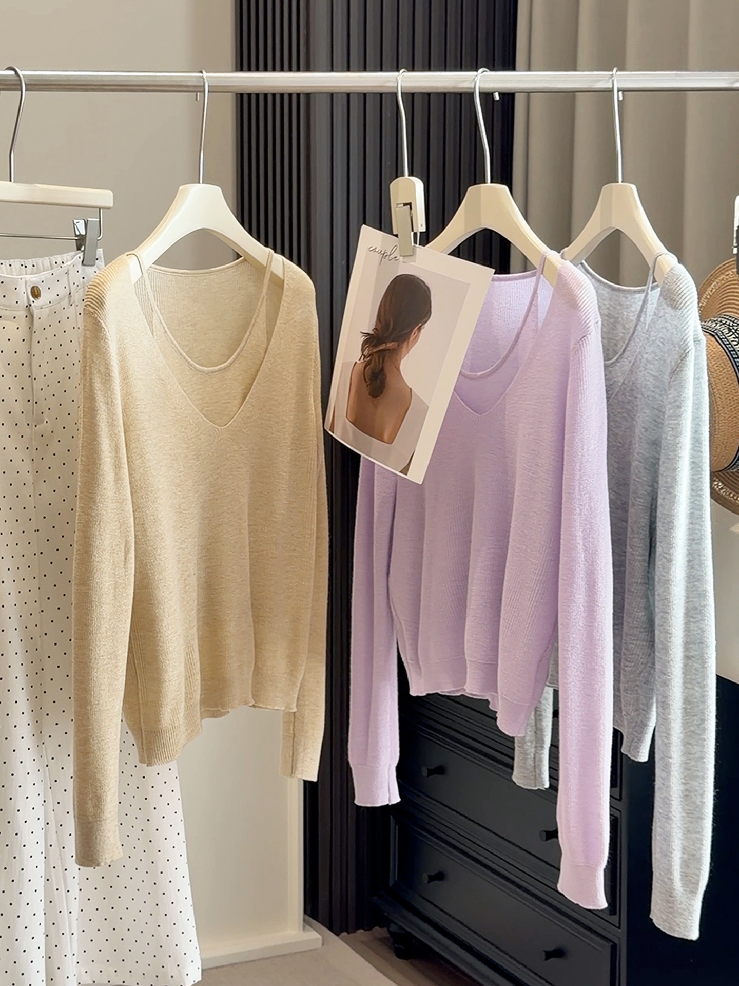 春季【韩系假两件针织衫】新款巨好看长袖薄款软糯毛衣打底衫
