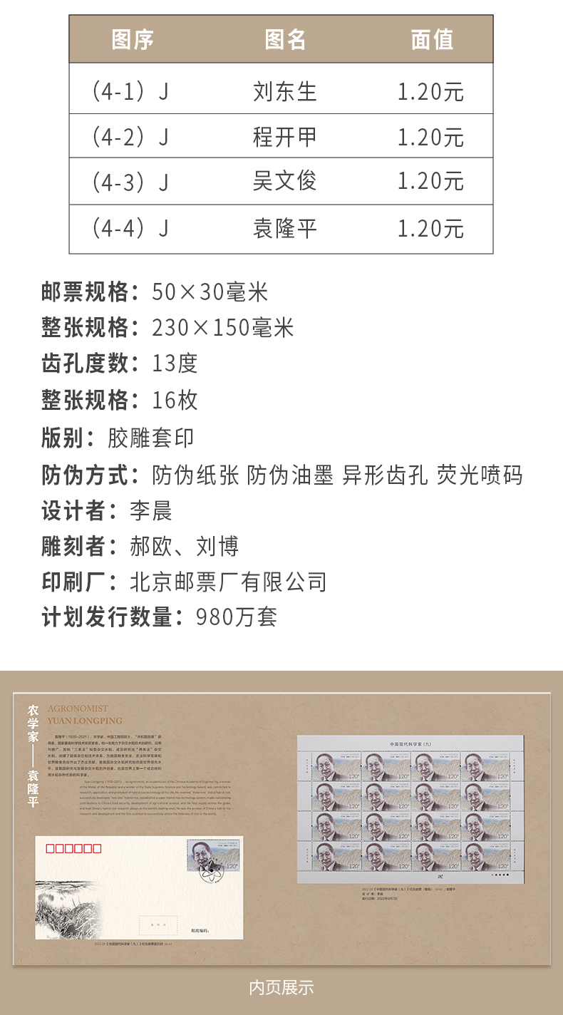 【中国邮政】中国现代科学家系列第九组·整版邮票册