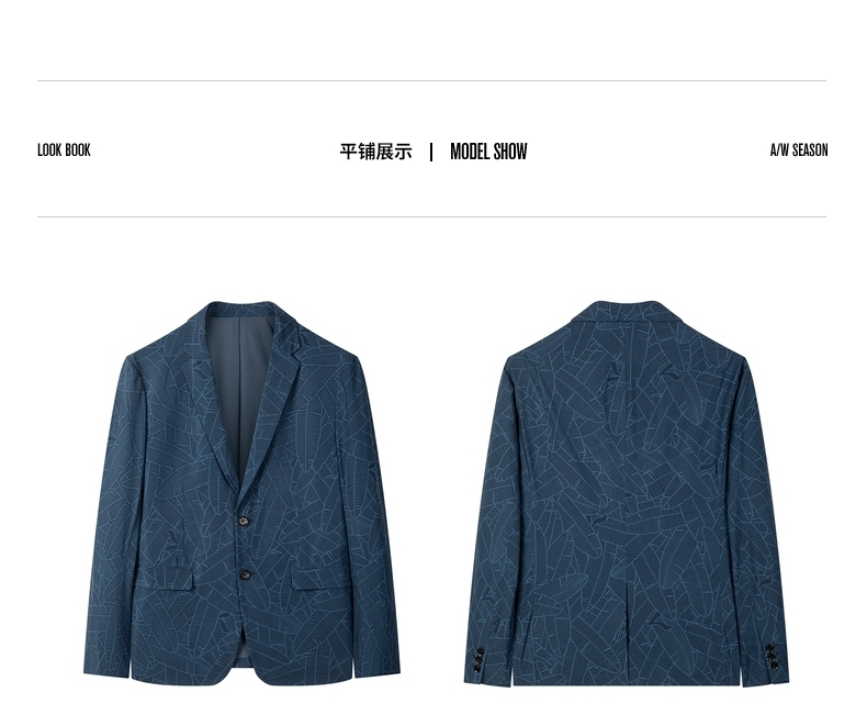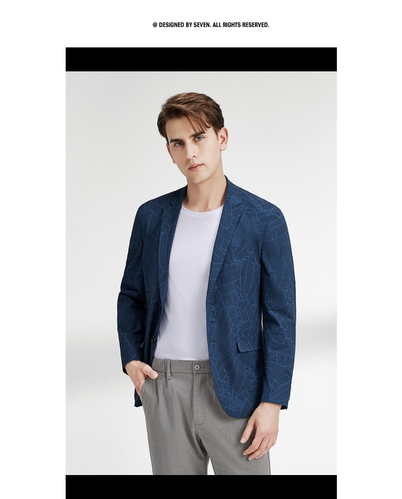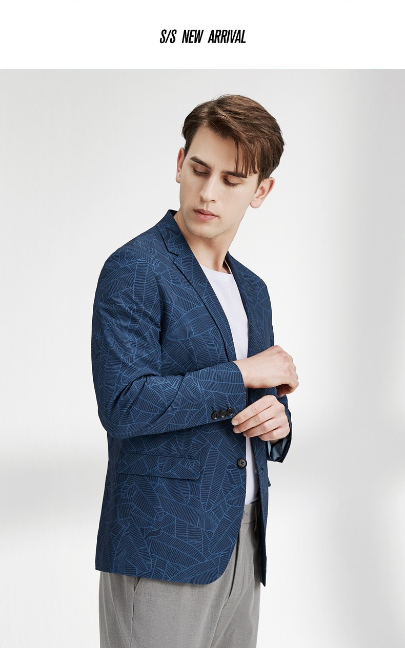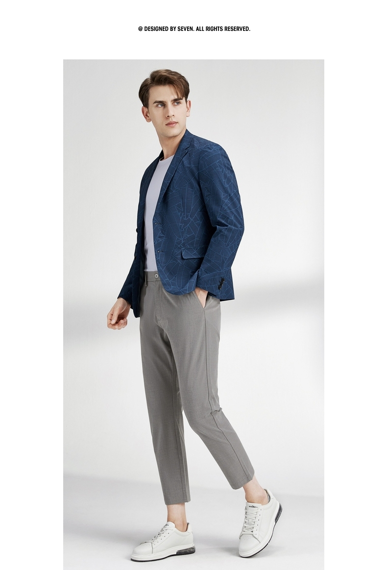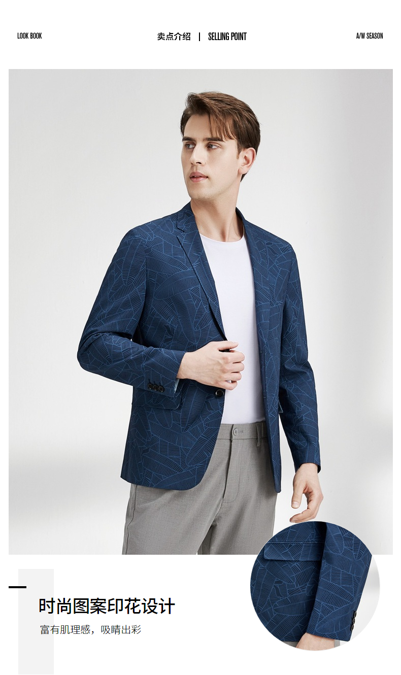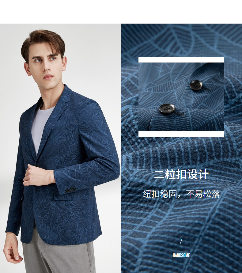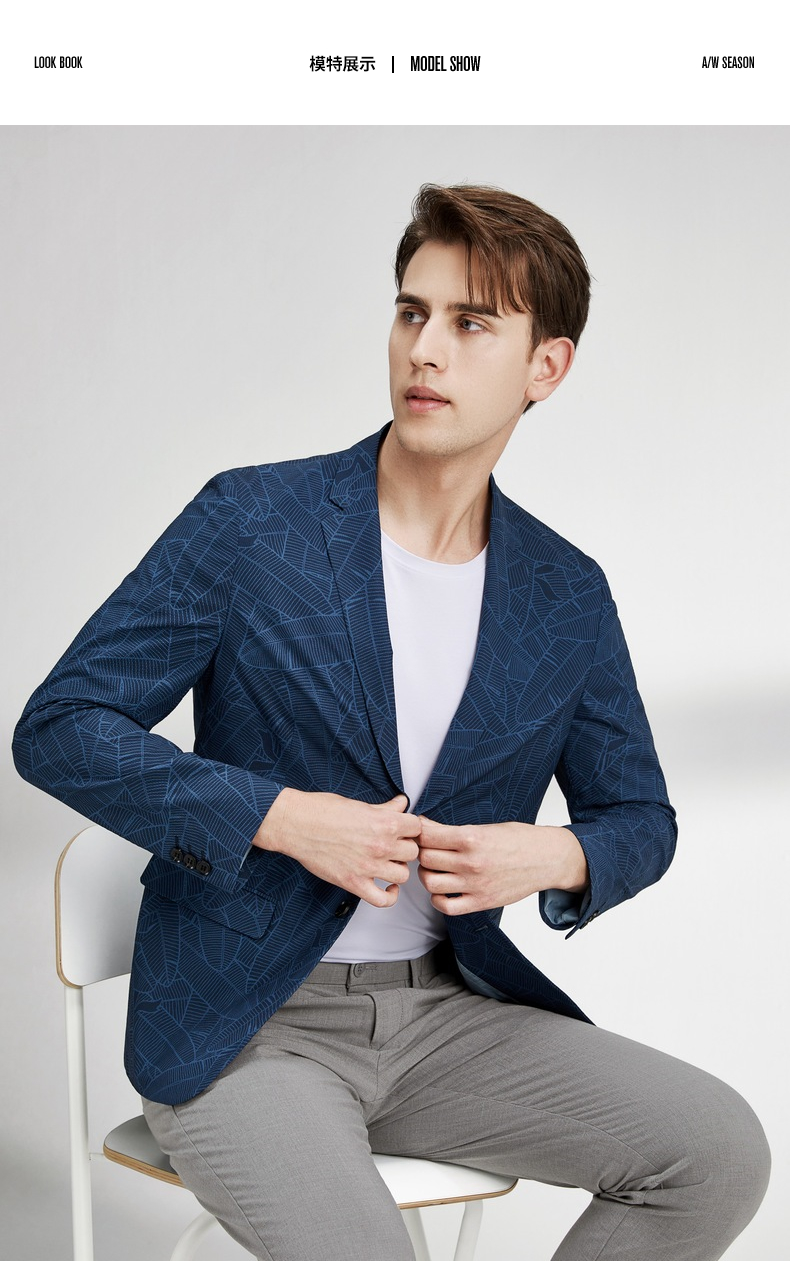 【特价】柒牌男士西服外套春秋新款商务休闲中青年个性印花单西两粒扣 122C70220