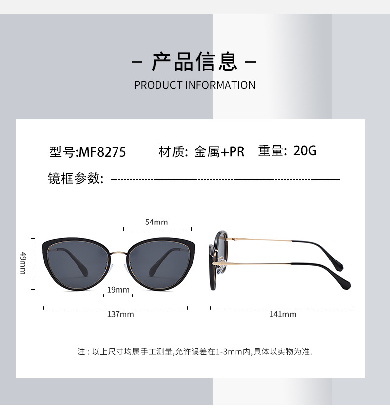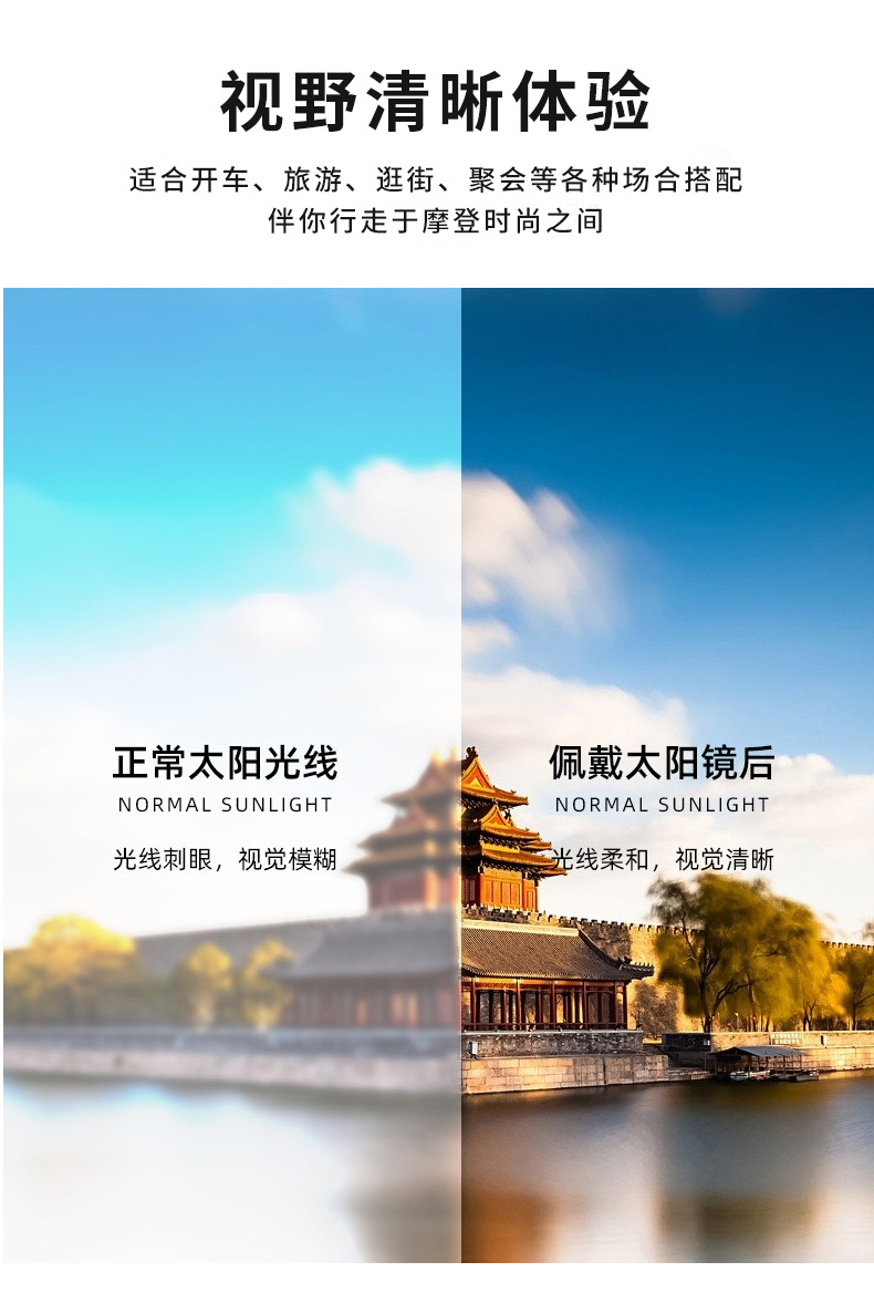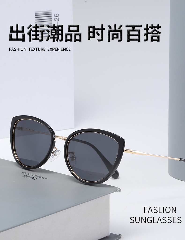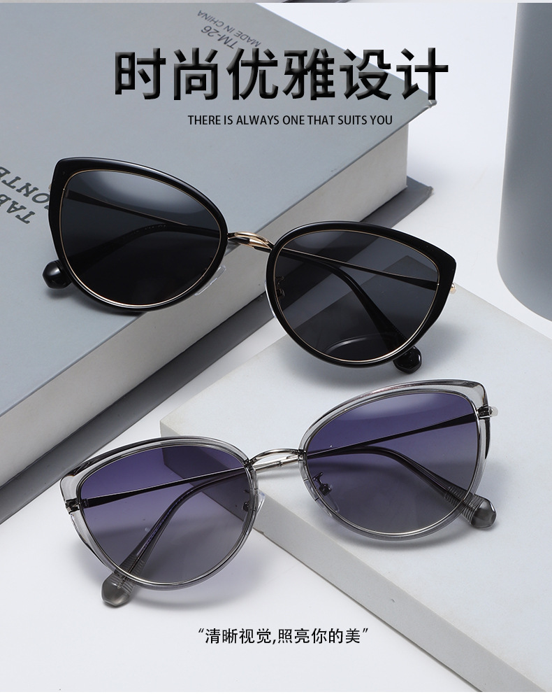 【新款时尚猫眼墨镜】女款高级感偏光太阳镜 显脸小防晒防紫外线潮 国庆五一出游