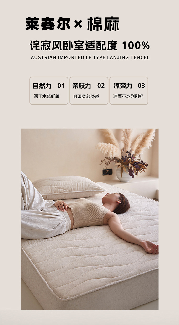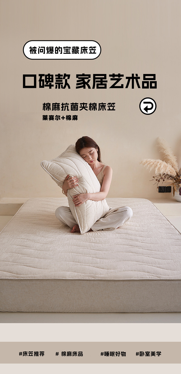 【A类天丝棉麻夹棉床笠】夹棉床笠良品天丝棉麻床笠床垫保护套床罩学生宿舍民宿织云居