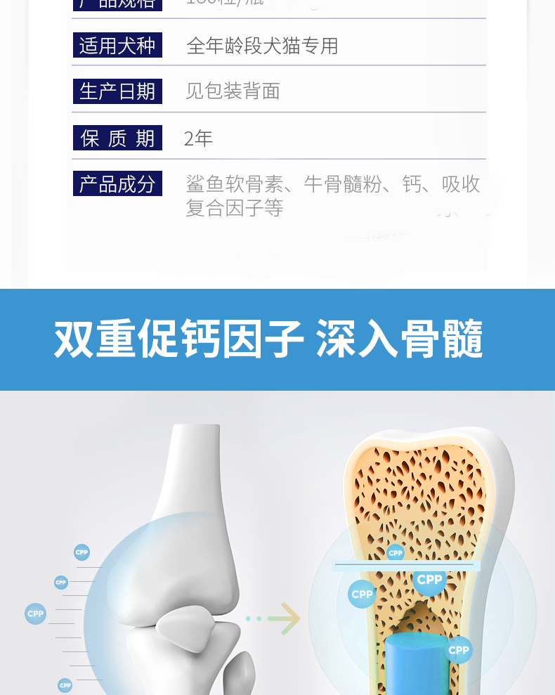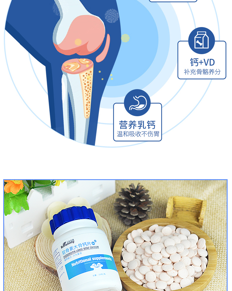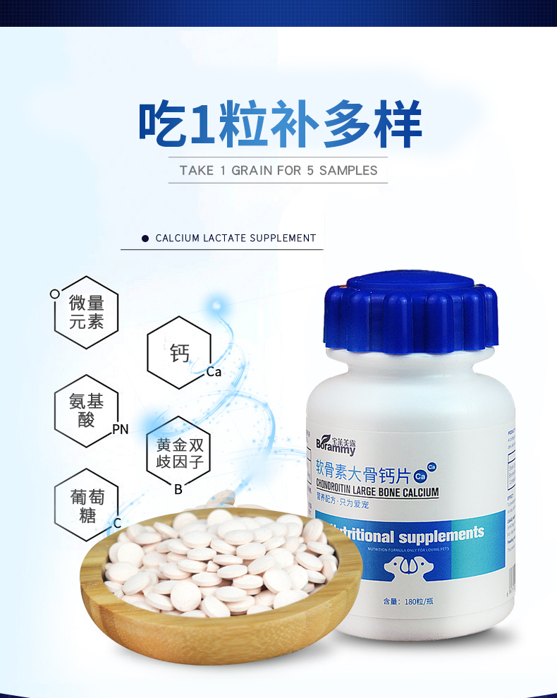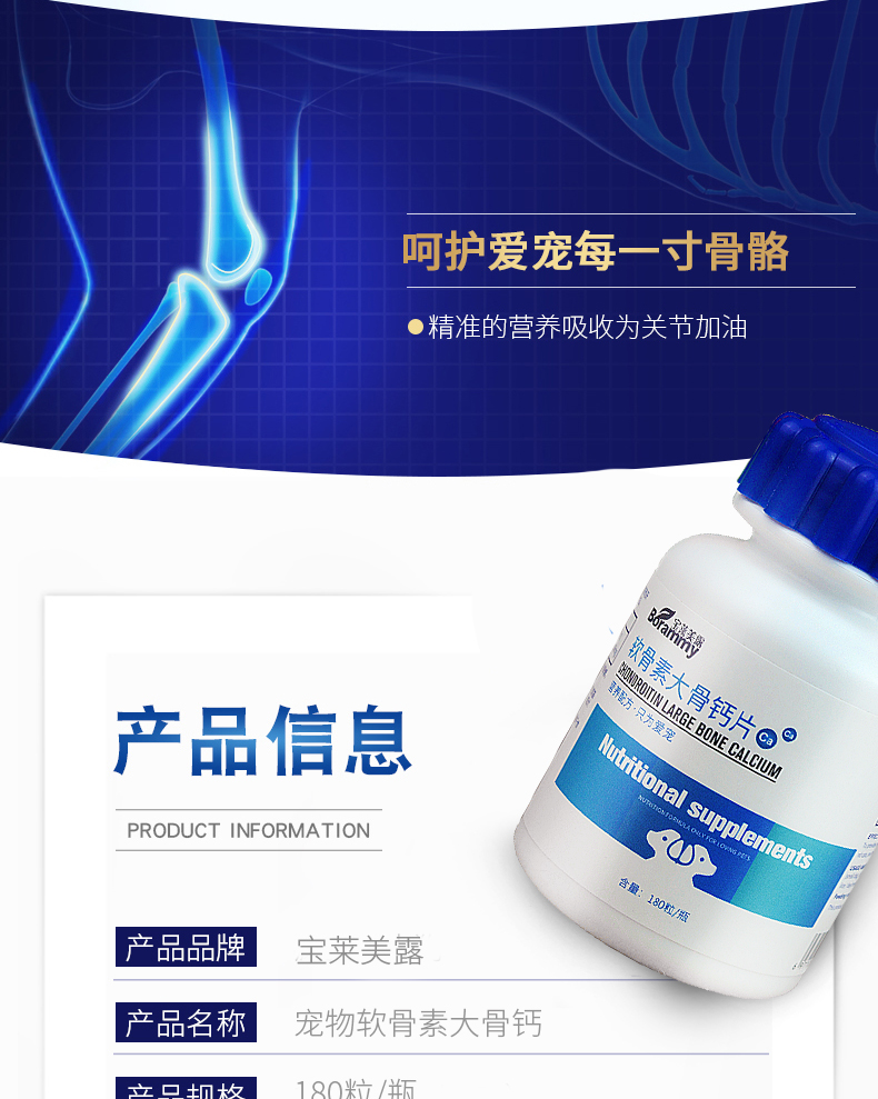 宝莱美露 软骨素大骨钙片180粒 宠外补钙微量元素