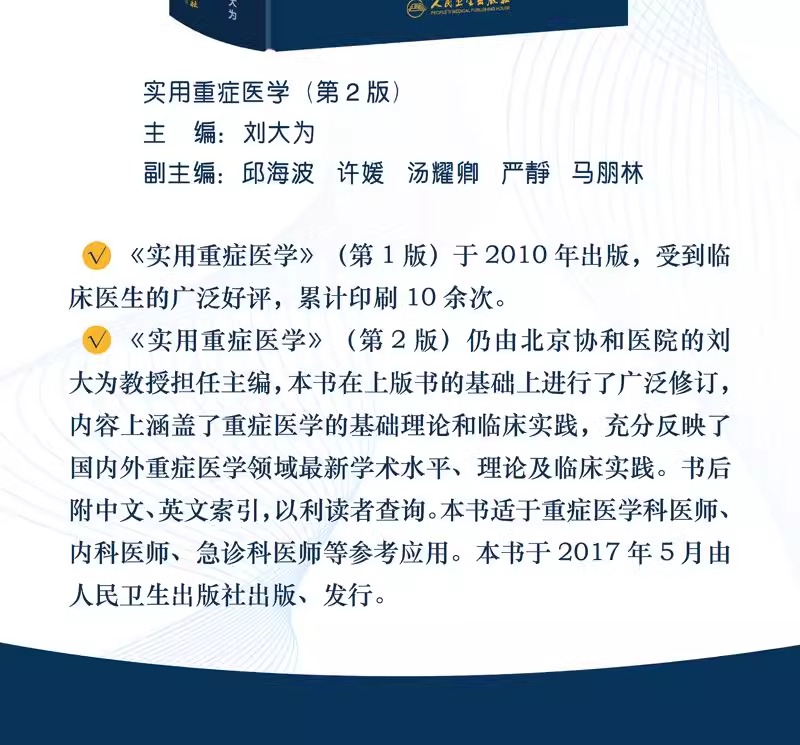 全2册 重症医学临床思维+实用重症医学 第2版 人民卫生出版社 本书针对其他专业的医务人员在重症救治方面也有重要的指导作用