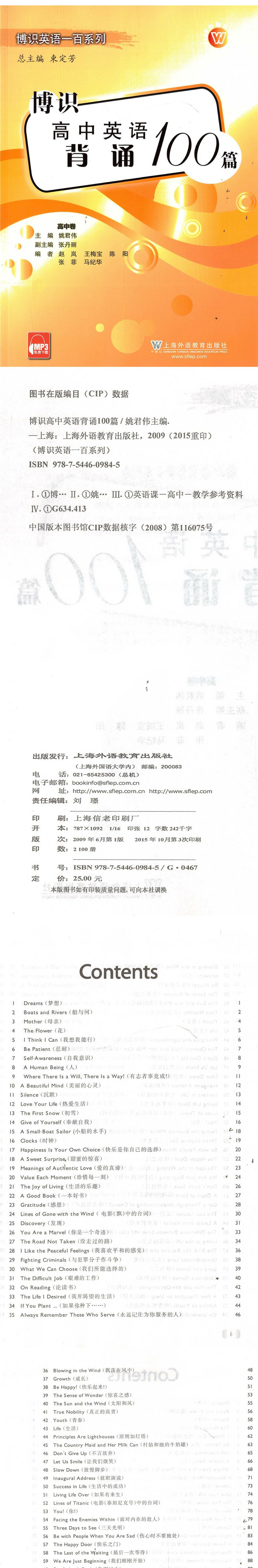 正版现货 中学教材教辅 博识英语一百系列 博识高中英语背诵100篇 高中卷 上海外语教育出版社
