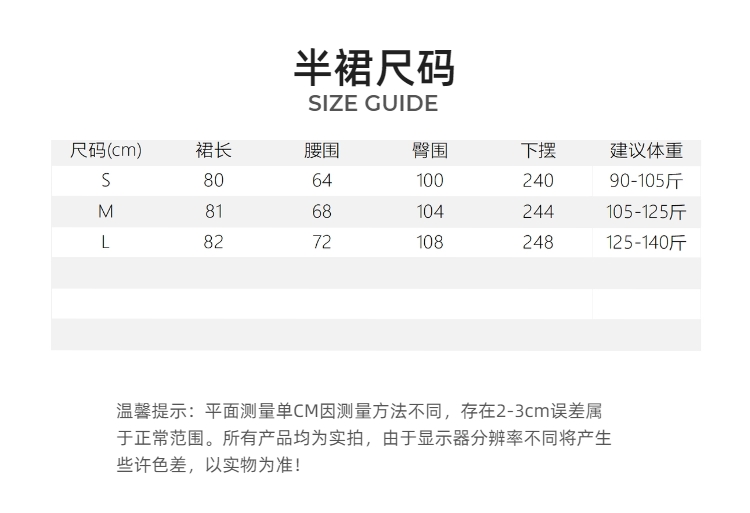 7. 服饰类:产品由于拍摄灯光和天气原因,显示器的差异可能会有轻微色差,颜色以收到实物为准。如有误差1-3CM为正常,不属于售后问题!