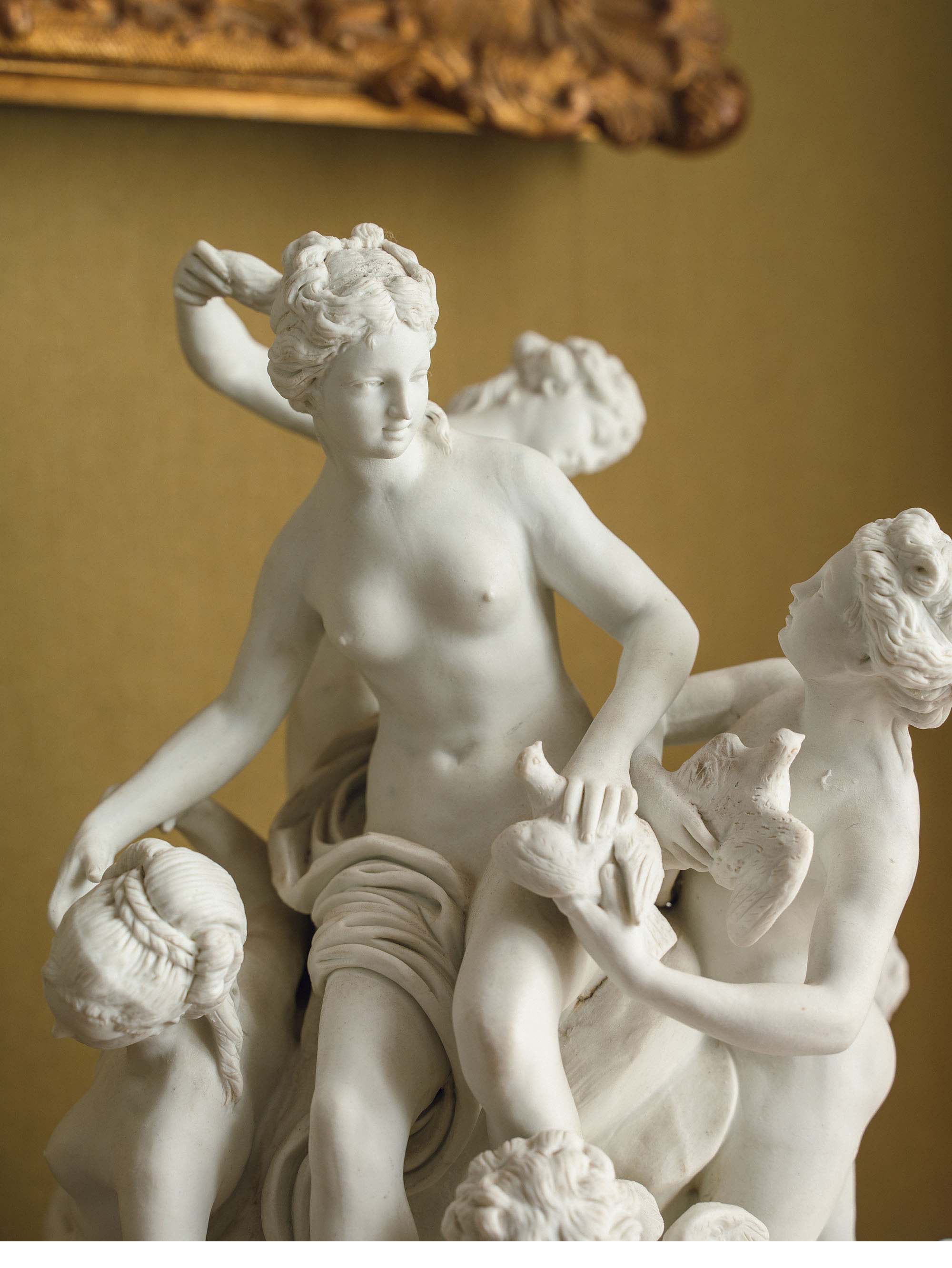 独角鹿西洋古董 19世纪法国御窑工匠Le Riche签名设计出品维纳斯梳妆主题素胎瓷人物雕塑