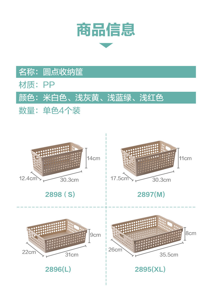 【茶花】圆点收纳筐4个