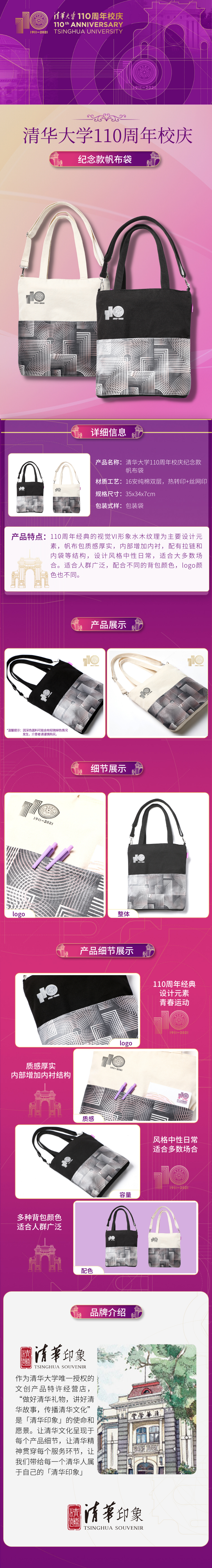 清华大学110周年校庆纪念款多功能帆布包