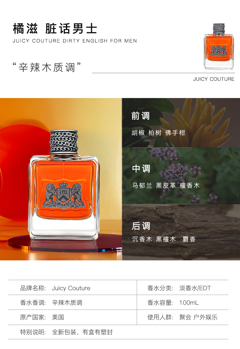 1LPY Juicy Couture橘滋脏话男士淡香水自然辛辣木质调持久留香100ml