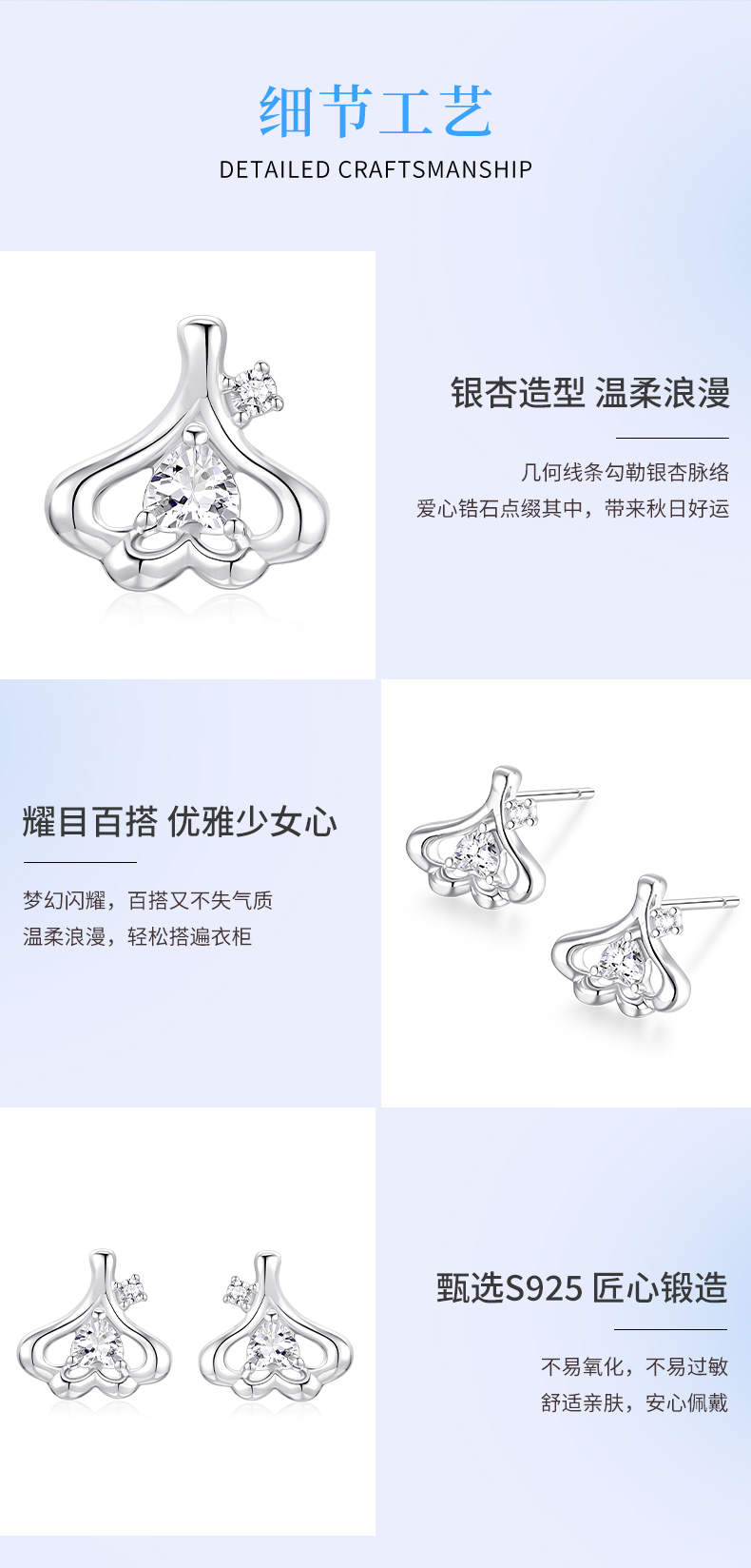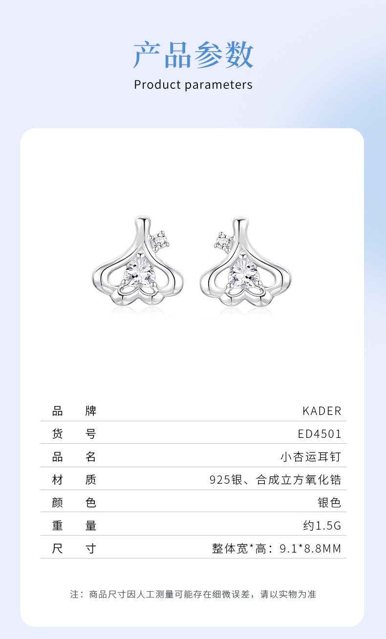 【三生有杏】卡蒂罗/KADER 小杏运耳钉 新中式浪漫银杏叶造型设计简约小众纯银耳饰 幸好有你时来运转配饰