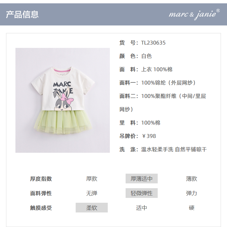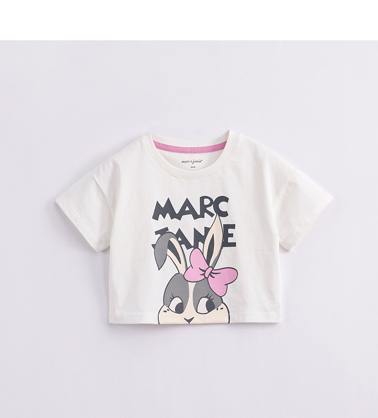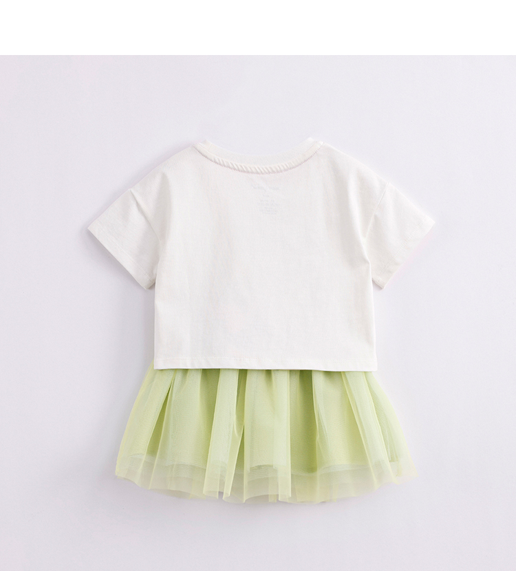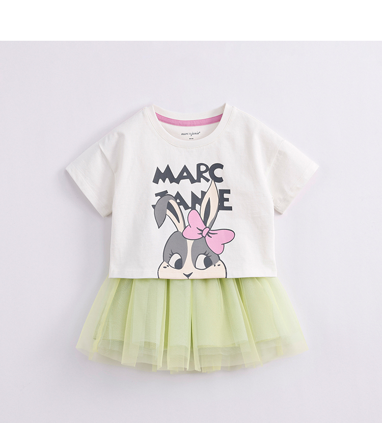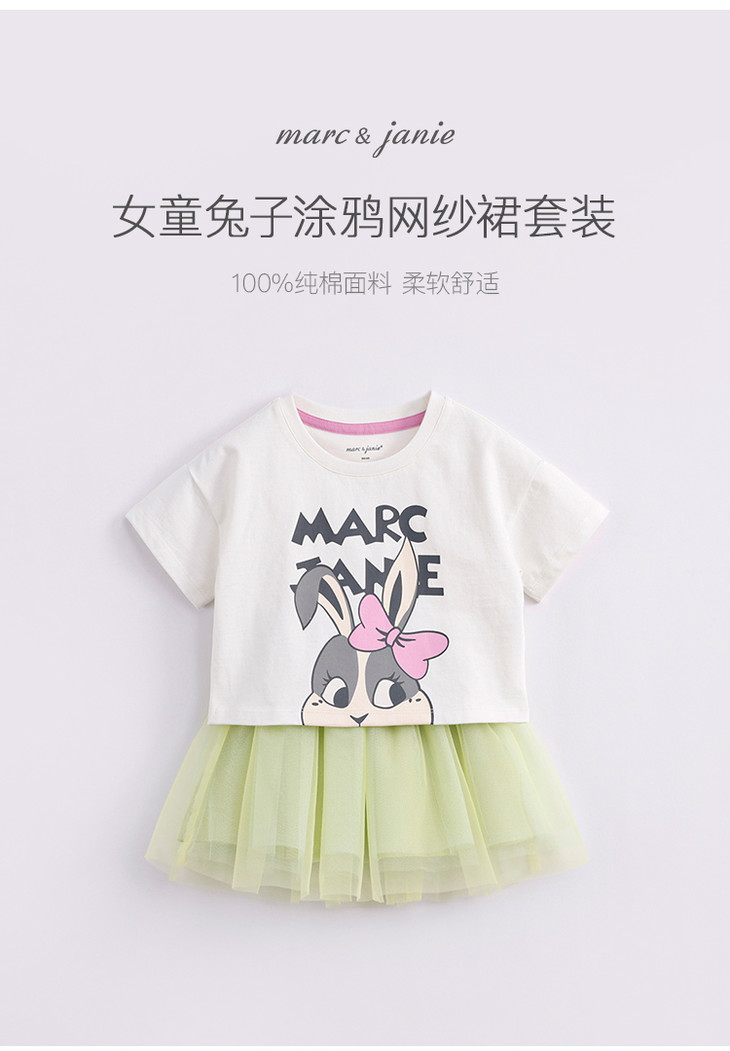 马克珍妮夏装新款 女童可爱兔子涂鸦网纱裙短袖套装230635